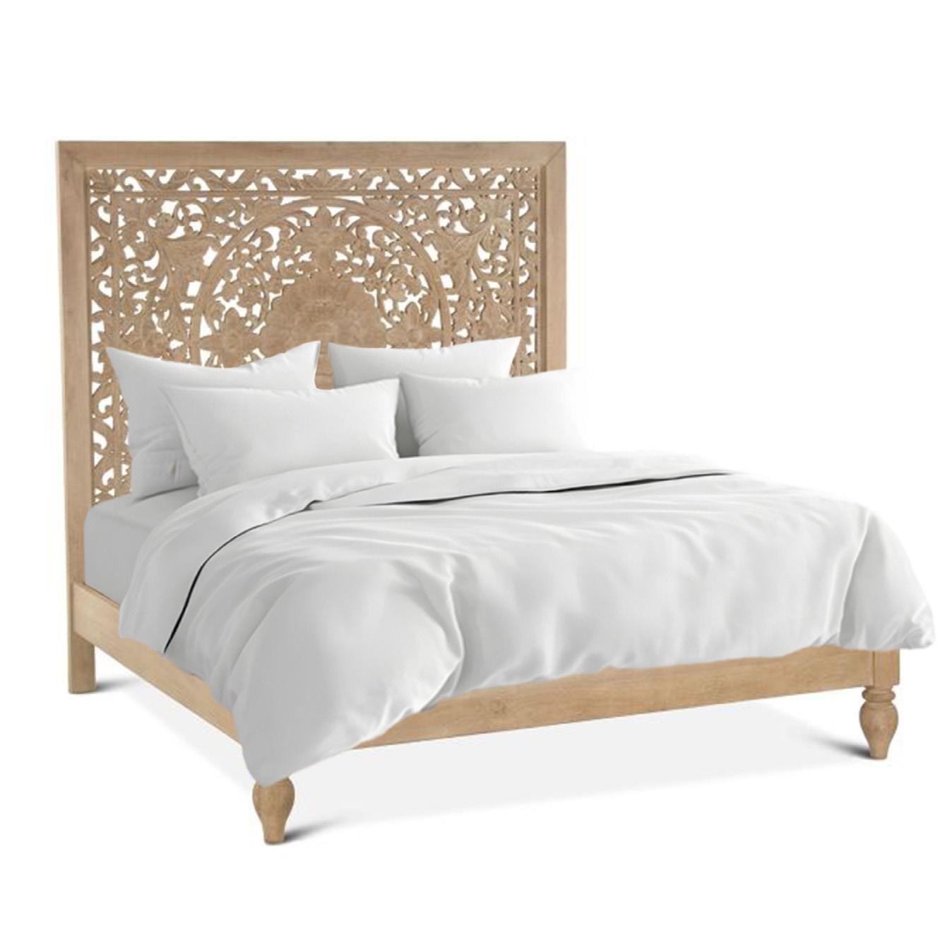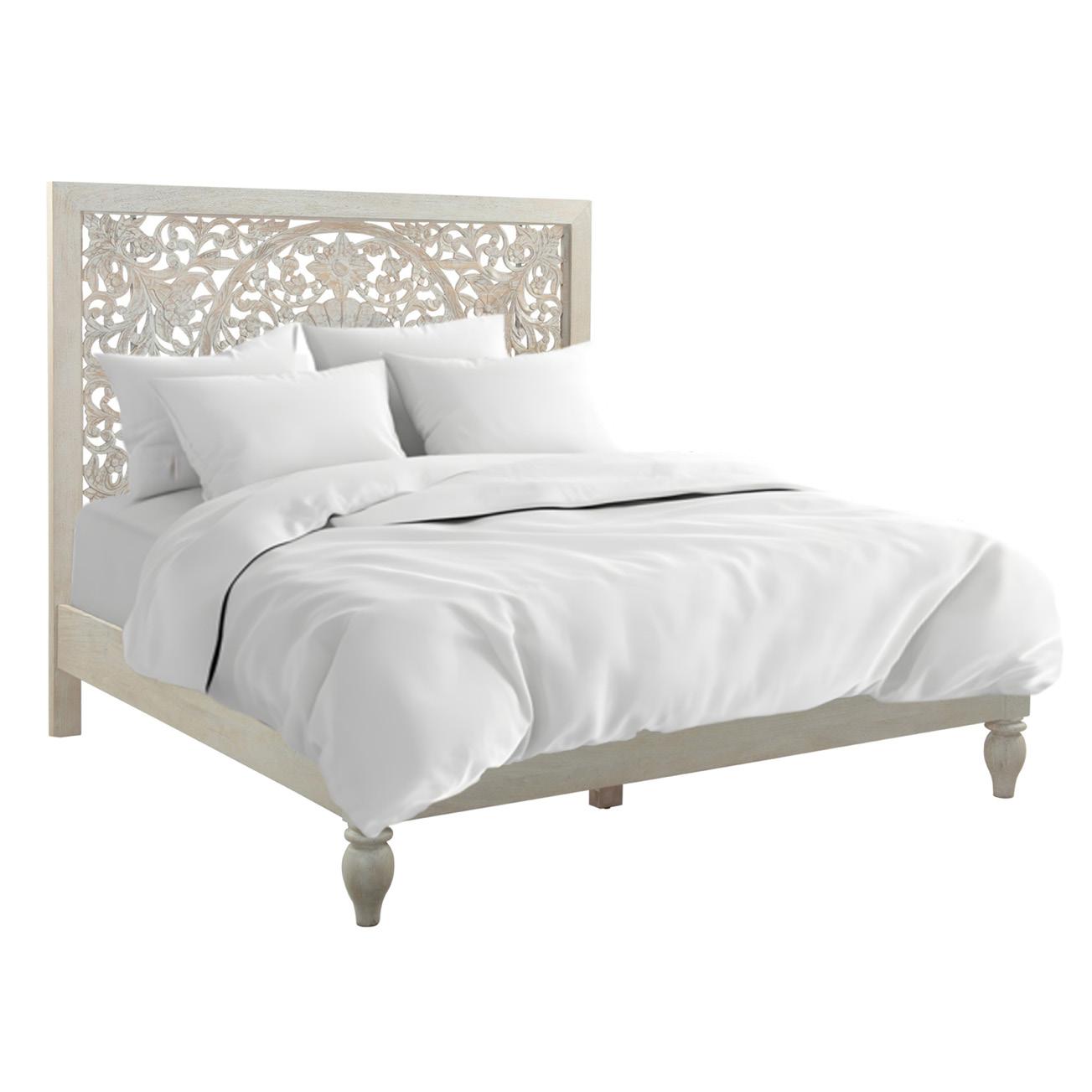 A. Taj King Bed in Carved Heirloom White (80 x 87.25 x 70) FTJ-PBKHW (shown) Taj Queen Bed in Hand Carved Heirloom White (64 x 87 x 64) FTJ-PBQHW