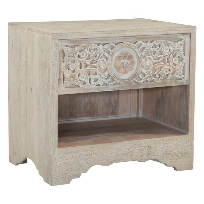 C. Taj 26" Nightstand with Plinth Base in hand Carved Whitewash (26 x 18 x 24) FTJ-NCP26WW
