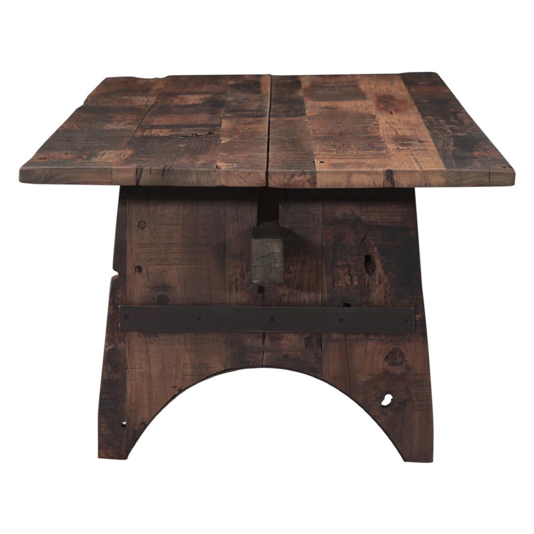 Patina Layer - After the entire piece has been hand-planed to create a nice benchmade feel to the table, the craftsman layers on a black patina. This is subsequently sanded off, but look around the piece inside of grooves, in the notches and distressing, and you will see these dark accents.