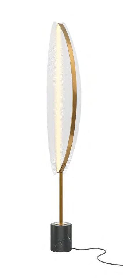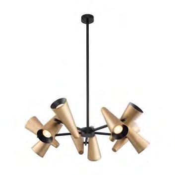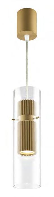 FR Corps en aluminium. Teintes : dorée, combinaison de dorée et noir. Diffuseur de deux types : tube silicone et gaine extra résistante (ne jaunit pas avec le temps, possède une forte solidité). Éclairage doux uniforme grâce à une haute densité des LED. Température de couleur : 3000K. Source de lumière LED.
