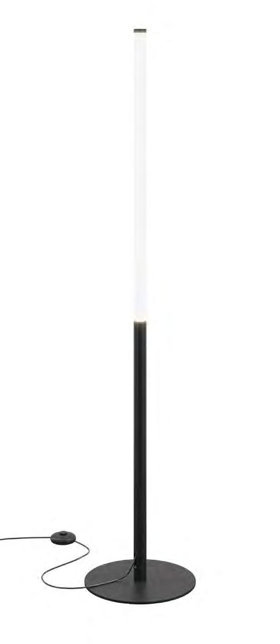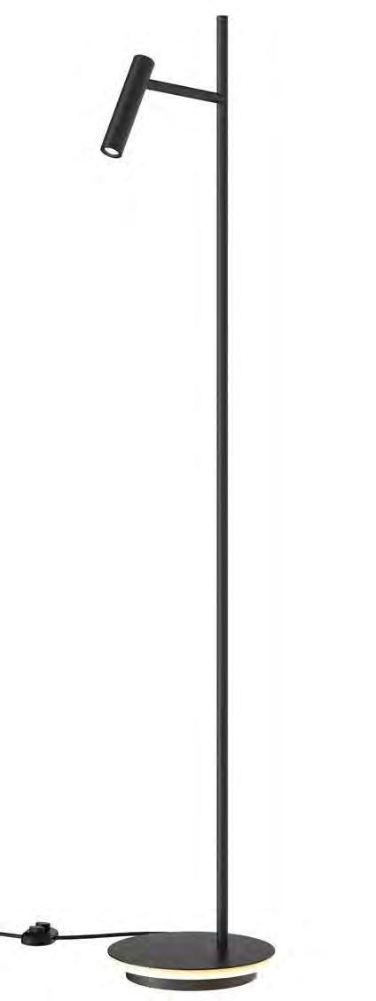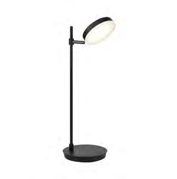DE Metallbeschläge, Farbton: Schwarz. Lampenschirm: Mattes Acryl und Aluminium im Farbton der Beschläge. Lichtquelle: SMD-LEDs. Farbtemperatur 3000K. Einstellbare Höhe.