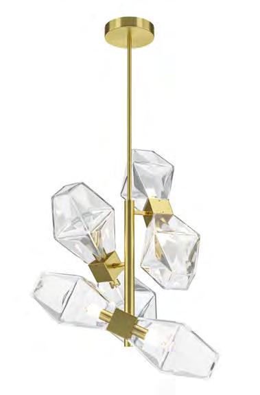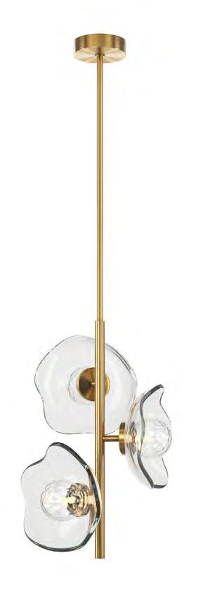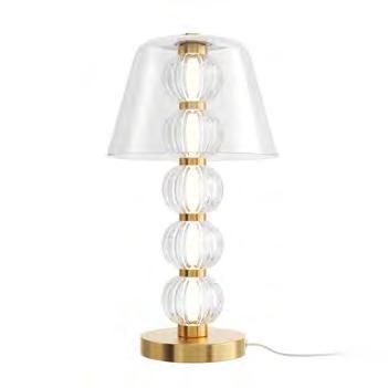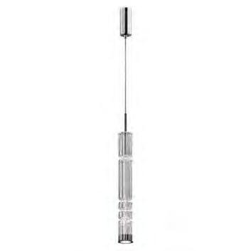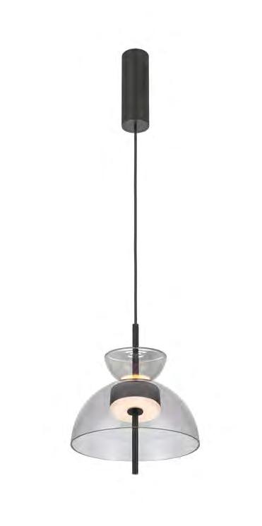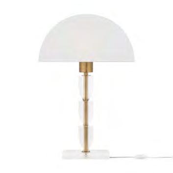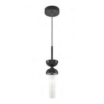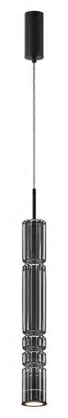DE Metallbeschläge in 2 Farbtönen: Schwarz und Messing. Lampenschirm: Transparenter Glasrohr. LEDLichtquellen mit einer Farbtemperatur von 3000K. Einfache geometrische Formen.