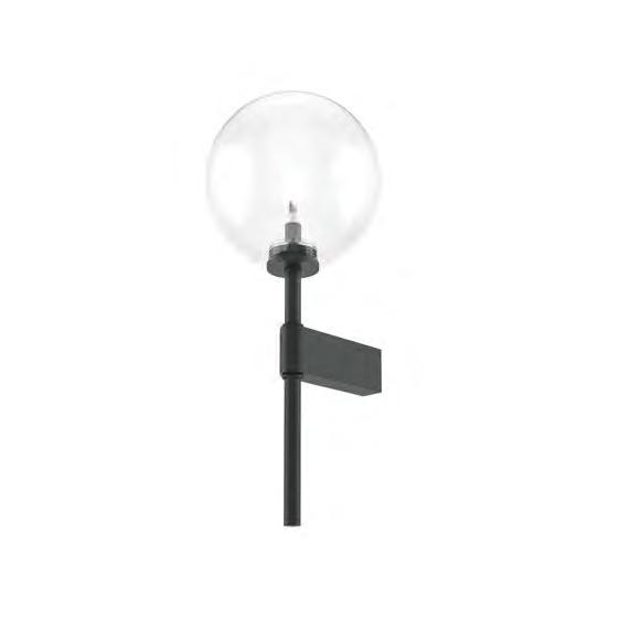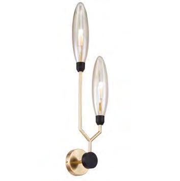FR Armature en métal en deux teintes : noir et laiton. Globe : tube de verre transparent. Sources de lumière LED avec une température de couleur de 3000K. Formes géométriques simples.