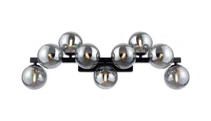 EN Metal fittings in two colors: black and brass. Dome lamp — transparent glass tube. LED light sources with a color temperature of 3000K. Simple geometric shapes.