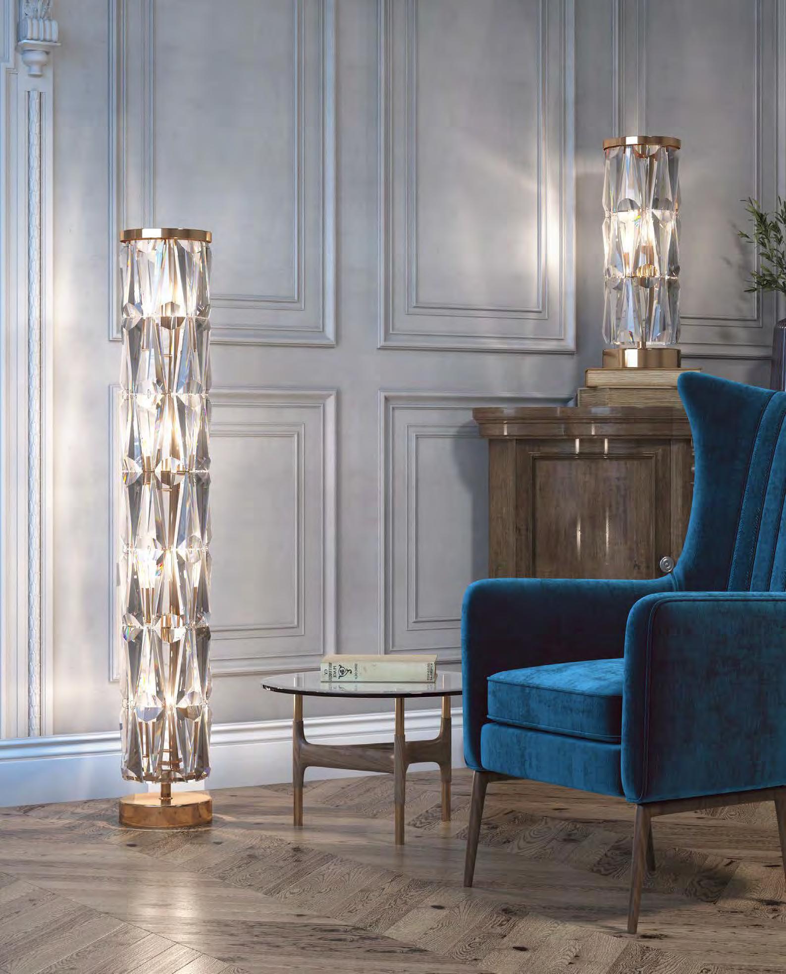 IT Due opzioni per la base della custodia. Metallico, i colori sono nero e ottone satinato. Marmo, i colori sono nero e grigio. Il paralume e’ un tubo di metallo con il diffusore nascosto. La serie riflette i sentimenti estetici rinascimentali, combinando abilmente le tavolozze di colori, le forme ed i materiali caratteristici del Rinascimento. La sorgente luminosa a LED. La temperatura di colore e’ 3000K.