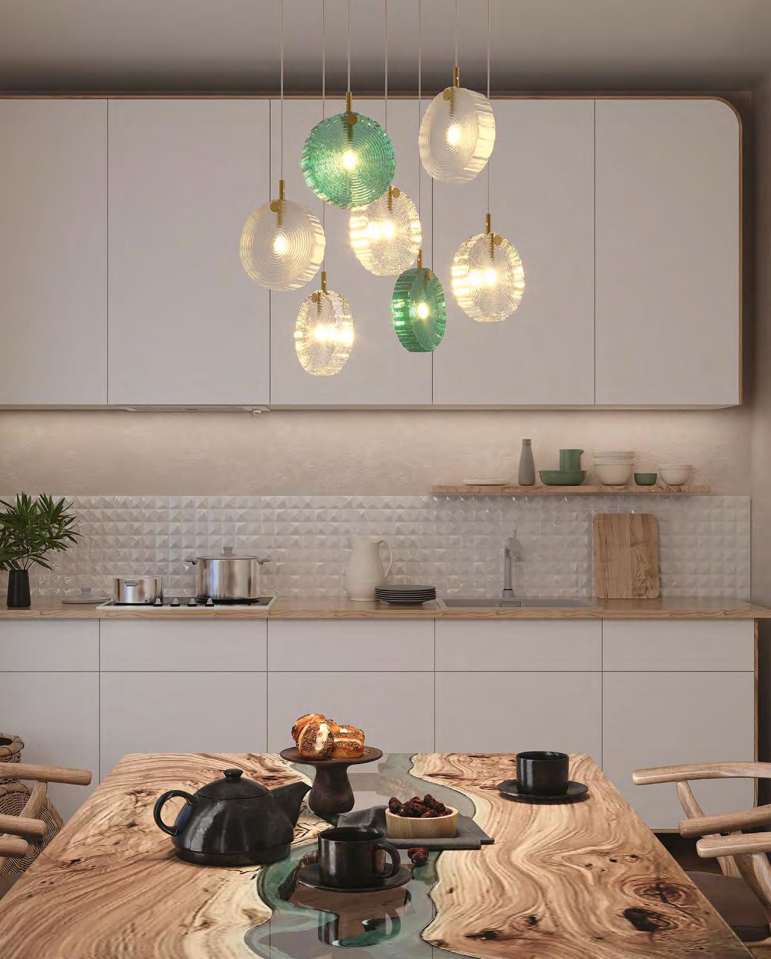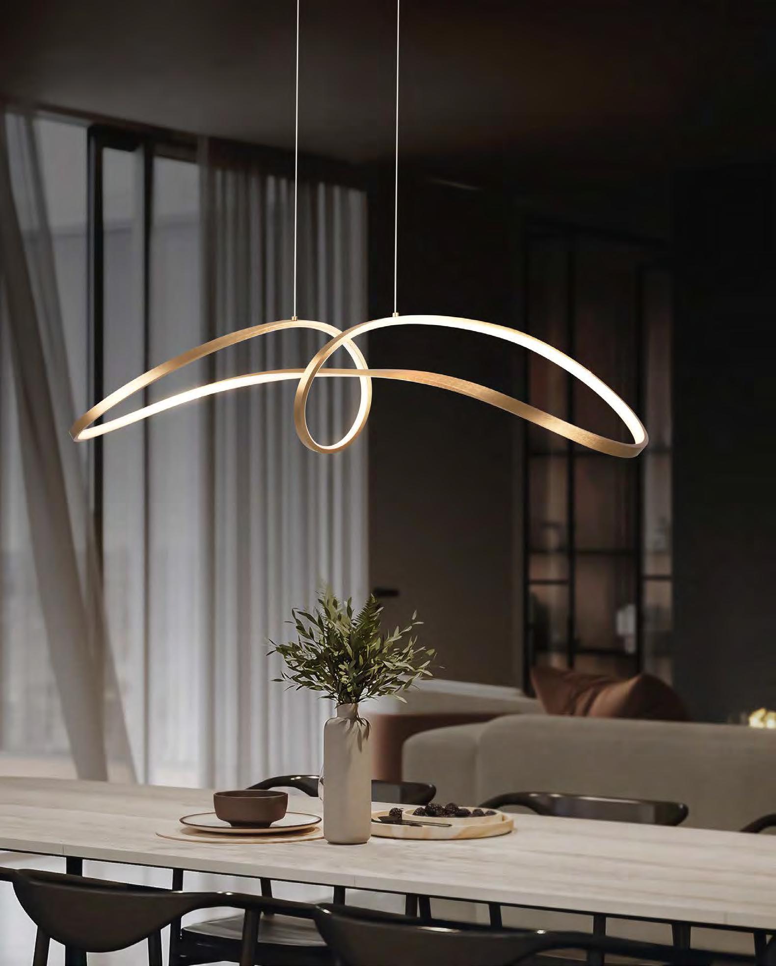 FR Matériau de l’armature : acier inoxydable, couleur: laiton. Source de lumière LED intégrée. Température de couleur neutre de 4000K. Forme arrondie tendance. La série comprend des modèles de suspensions de différents diamètres.