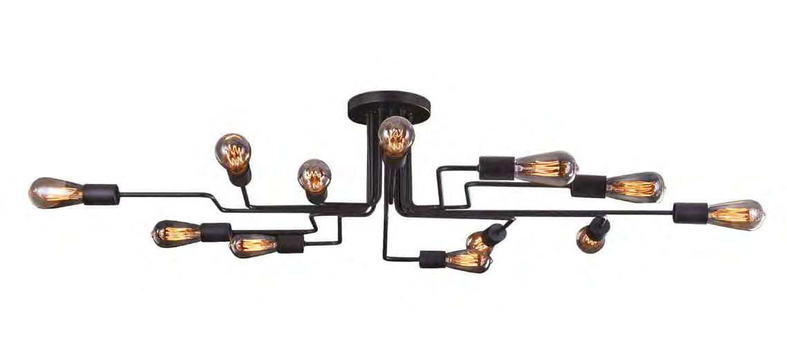 IT Armatura metallica in due tonalità: nero e ottone. Plafoniera: tubo di vetro trasparente. Sorgenti luminose a LED con temperatura di colore di 3000K. Forme geometriche semplici.