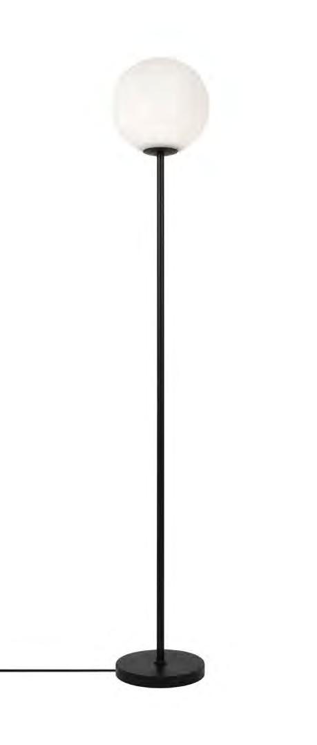FR Matériau de l’armature : métal, couleur : noir. Globe: acrylique mat et aluminium dans la teinte de l’armature. Source de lumière : LED SMD. Température de couleur : 3000K. Hauteur réglable.