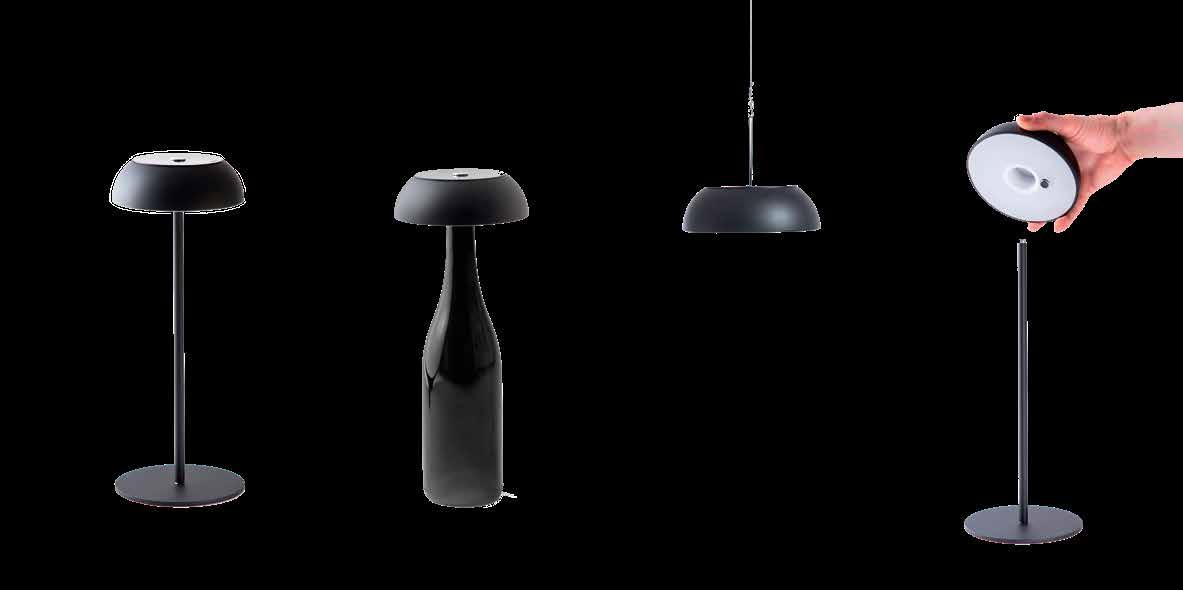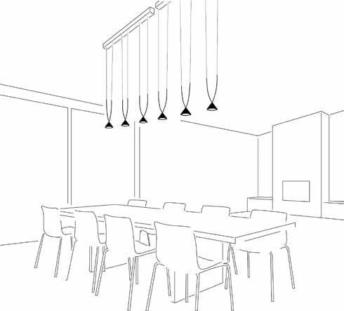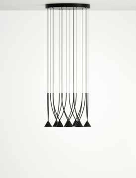 Collection consisting of steel and aluminum suspended, floor and table lamps. Available in black colour. The Lighting source can be installed in three different positions. Built-in dimmable LED light source.