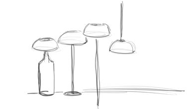 If the lamp body contains the physical dimension of the design, the light represents the "ultra-physical" extension of the design.
