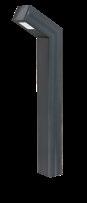 Bollard per arredo urbano a sezione rettangolare con braccio a 60°, in alluminio estruso anodizzato e verniciato a polvere con pretrattamento specifico per esterni. Testata di chiusura frontale in tecnopolimero rinforzato e flangia per installazione su plinto / pavimentazione in acciaio zincato. Lente in PMMA trasparente inalterabile ai raggi UV e profilo decorativo laterale ad incastro in policarbonato. Kit tirafondi M12x200mm da ordinare separatamente. Versione applique in coordinato con staffa per il montaggio a parete in acciaio zincato.