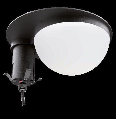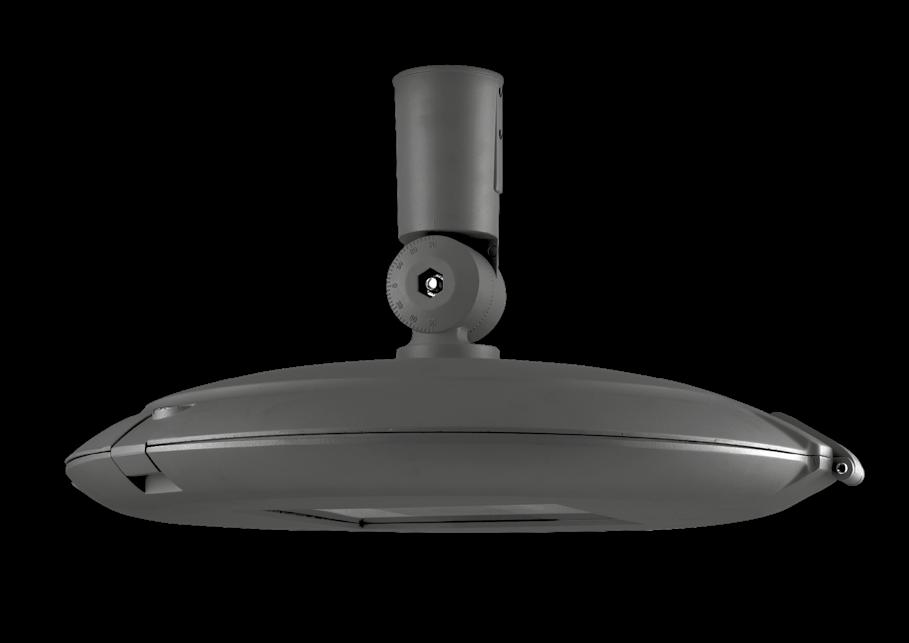 Pole-top adjustable in vertical/horizontal position with tilt regulation ±10° in steps of 5°. Flat, transparent, tempered glass diffuser 4mm thick and transparent PMMA lens UV resistant. Driver with over voltage protection -common mode 10kv, differential mode 6kv-. Complete with osmotic valve.