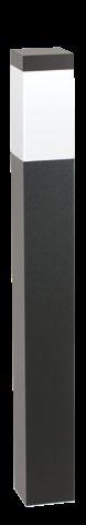 Bollard per arredo urbano a sezione rettangolare con braccio a 90°, in alluminio estruso anodizzato e verniciato a polvere con pretrattamento specifico per esterni. Testata di chiusura frontale in tecnopolimero rinforzato e flangia per installazione su plinto / pavimentazione in acciaio zincato. Lente in PMMA trasparente inalterabile ai raggi UV e profilo decorativo laterale ad incastro in policarbonato. Kit tirafondi M12x200mm da ordinare separatamente. Versione applique in coordinato con staffa per il montaggio a parete in acciaio zincato.