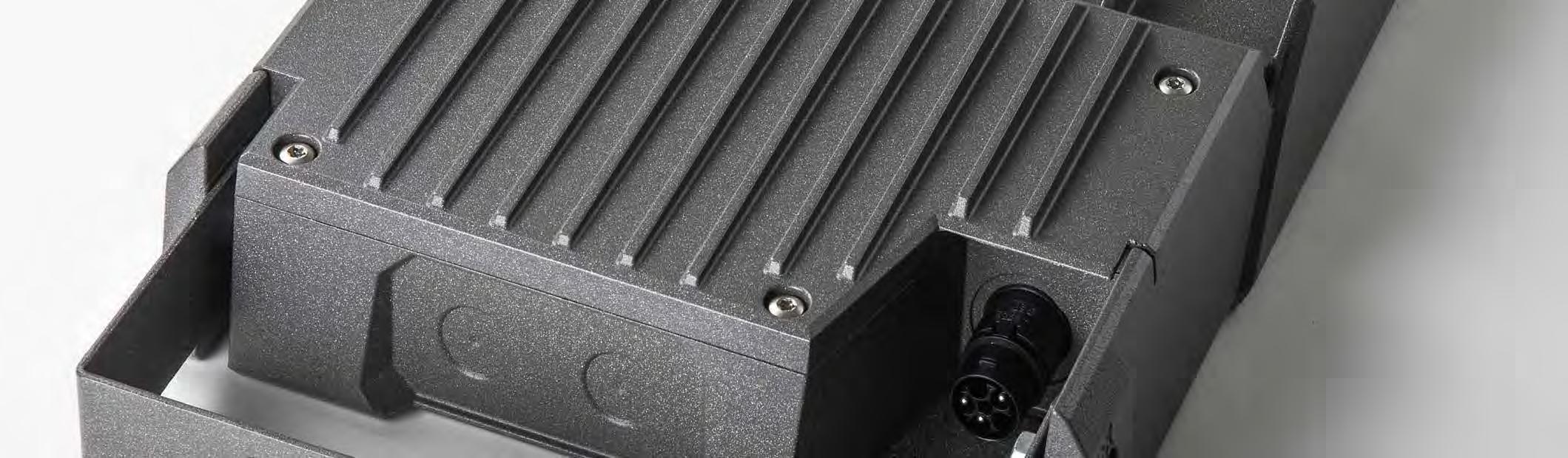 Housing and frame: in die-cast aluminum. Housing with cooling fins for maximum heat dissipation.