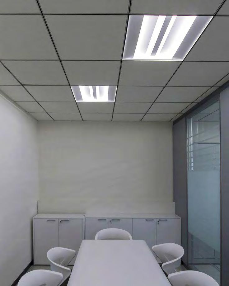 Optics: PMMA anti-UV UL94, available in 60° (UGR <19) and 90° (UGR <21), developed with innovative ELA (Extended Light Area) and CLC (Constant Light Color) systems.