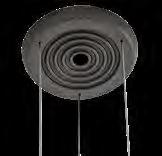 Dettaglio kit di sospensione: Rosone e cavo di alimentazione L=2,5m. Suspension kit detail: Ceiling base and power supply cable L=2,5m.