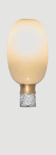 L’incantevole gioco di luce attraverso la caratteristica superficie “craquelé”, unita al fascino geometrico del vetro, crea l’illusione di una clessidra di luce all’interno del diffusore. MACONDO racchiude l’accattivante fusione di luce e vetro, presentando un oggetto d’arte davvero enigmatico.