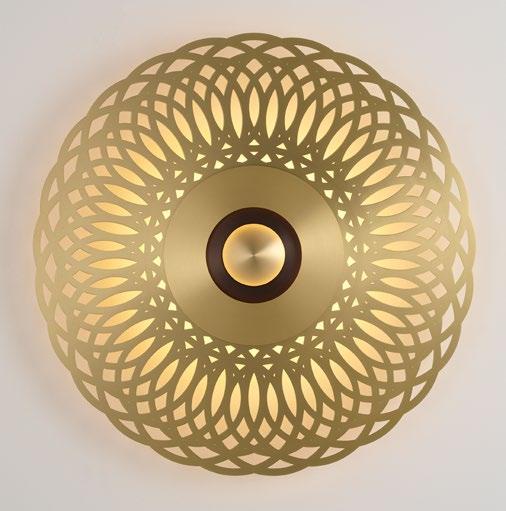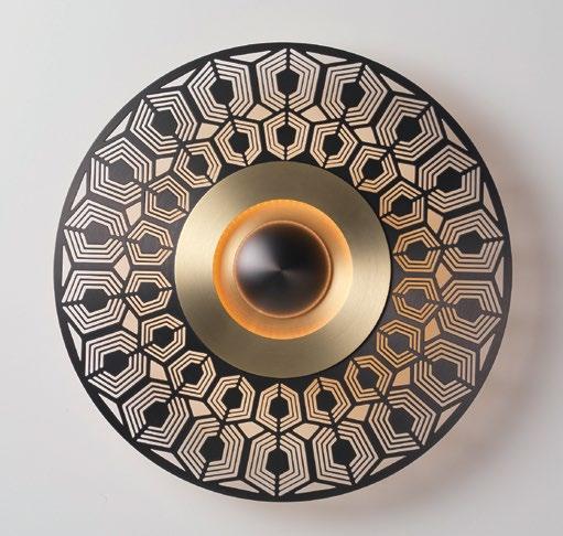 Au centre de sa grande couronne ajourée, les disques concentriques d’Atmos se succèdent jusqu’à son cœur lumineux. Grande sœur de l’applique Earth, Atmos se distingue par sa grande taille et la multitude de combinaisons de décors possibles.