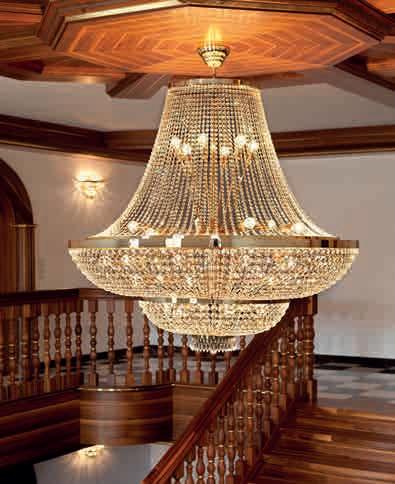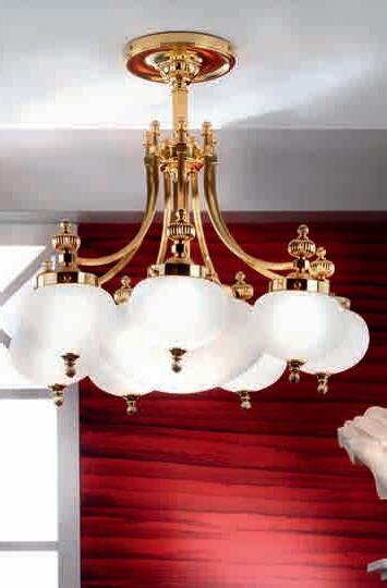 Ø 80 cm, H 80 cm, 6 x E27/60 W + 6 x E14/40 W Glas 474/435 klar-matt /Schliffdekor