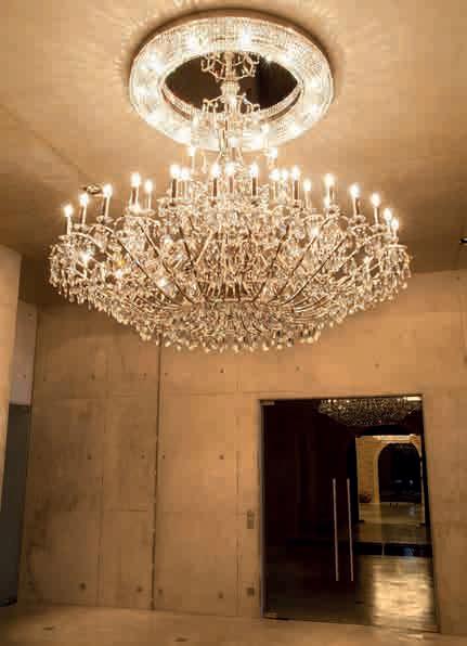 Ø 100 cm, H 95 cm, 8 x E27/60 W + 12 x E14/40 W Glas 476/560 klar-matt / Schliffdekor