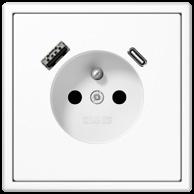 JUNG SCHUKO ® sockets with USB port are tested and certified by VDE. with USB-C in LS 990 in white with USB-A in LS 990 in white