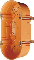 Centre plate with supporting frame, screw fixing only for 2 loudspeaker sockets up to 18.5 mm Ø or with flange mounting 22.5 mm hole spacing. In connection with mounting plate ref.-no. 63 WBT (not included) for loudspeaker terminal ref.-no. LPK 63 RT/SW and RCA socket ref.-no. CIB 63. Second hole can be broken out.