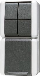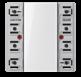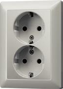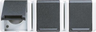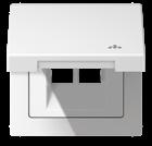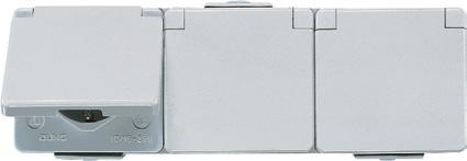 Cat. 3 RJ 45, M1 series: ref.-no. M1BH.., unshielded, Cat. 5 RJ 45, MPS100 series: ref.-no. MPS100BH.., unshielded, Cat. 6 RJ 45, MGS200 series: GigaSPEED, ref.-no. MGS200BH.., unshielded Shutter with spring for 2 sockets