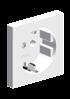 Centre plate (snap-on fixing) with supporting frame, screw fixing only for modular jack socket Siemon: CT range Shutter with spring for 2 sockets for modular jack sockets
