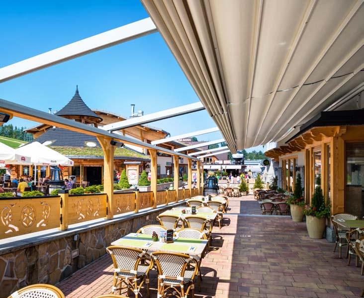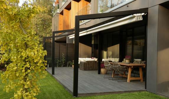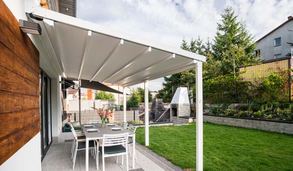 Eleganckie, klasyczne i najchętniej wybierane zadaszenie w naszej ofercie. Tarasola Elegancy łączy prostotę i luksus, a dzięki nowoczesnym rozwiązaniom technologicznym, jest również łatwa i praktyczna w użytkowaniu. Konstrukcja składa się z aluminiowej podstawy, zadaszenia wykonanego ze specjalistycznej tkaniny Techprotect oraz daszka systemowego, który chroni materiał po zwinięciu. Starannie dobrane elementy wyposażenia dodatkowego mogą decydować o tym, że taras, ogródek restauracyjny czy patio będą funkcjonowały od wczesnej wiosny do późnej jesieni i staną się najważniejszym miejscem do wypoczynku, imprezy czy rodzinnego obiadu.