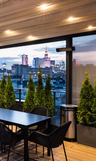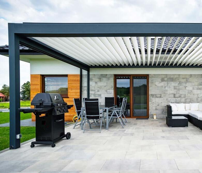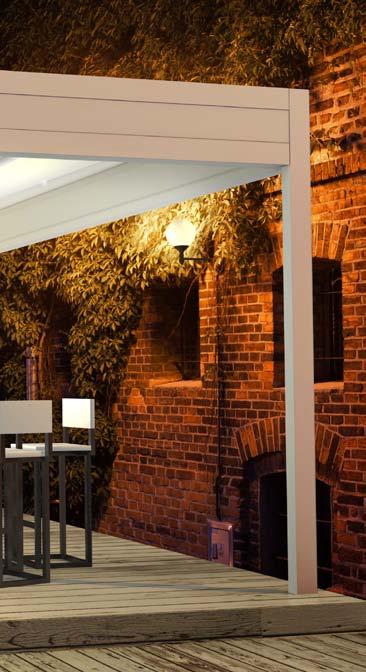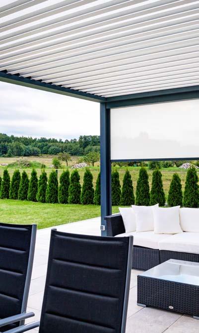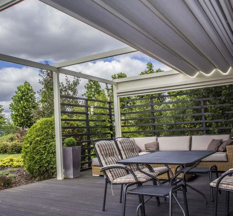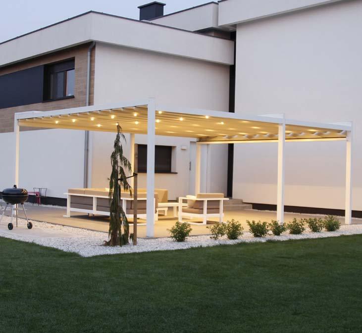Technic looks rough in terms of its appearance and design but is a tech nologically modern product in our offer. Its roof consists of aluminium battens which can be turned through 135 degrees. Thanks to the smooth adjustment of the slats inclination angleusers can fully control the sunlight, allowing natural free air circulation and ventilation. Solid construction made of aluminium is fully resistant to the extremes of temperature and meteorological factors. Our terrace pergola equipped with glazing, blinds, LED lighting, radiant heaters or water mist diffusers are unbeatable and all-year-round.