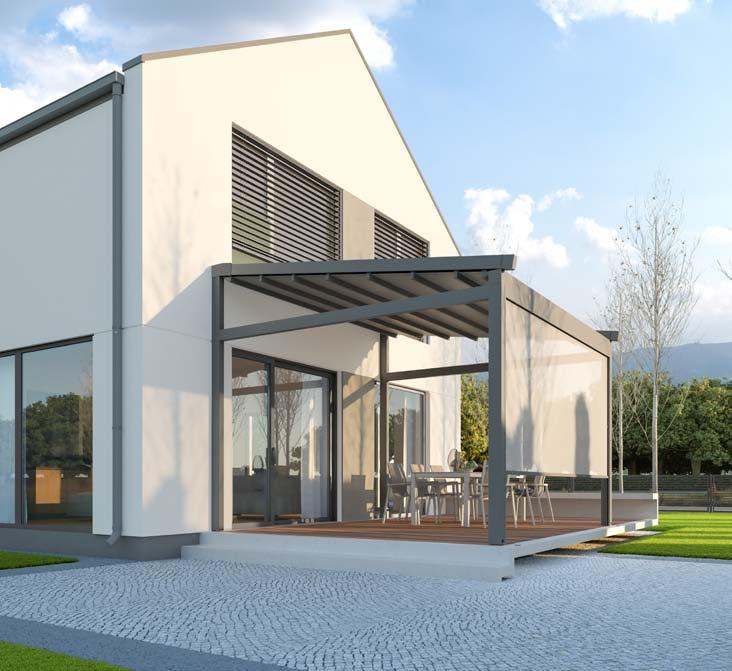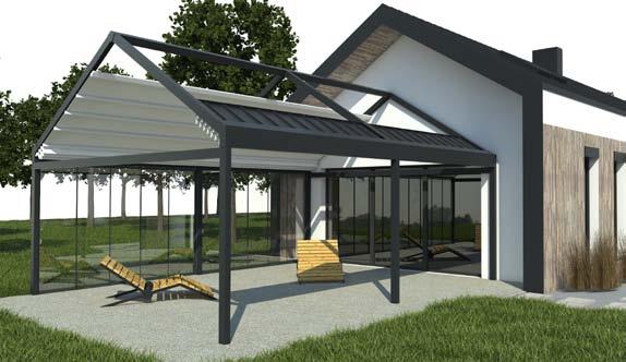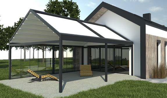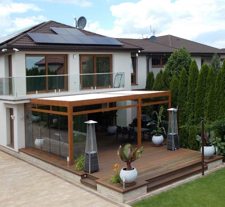 Cubic ist eine Konstruktion mit einer harmonischen Linie und einer kubischen Form. Dieses Produkt ist ein ungewöhnlicher Vorschlag sowohl für Planungs - und Architektenbüros als auch für individuelle Kunden, die Originalität zu schätzen wissen. Die volle Automatik garantiert eine problemlose, komfortable und diskrete Steuerung der Überdachung. Dank den rechten Winkeln hat man viele Möglichkeiten die Ergänzungsprodukte zu verwenden. Verglasungen oder beschattende Rollladen schützen die Terrassenüberdachung vor ungünstigem Wetter und betonen zusätzlich das geometrische Aussehen des Modells.