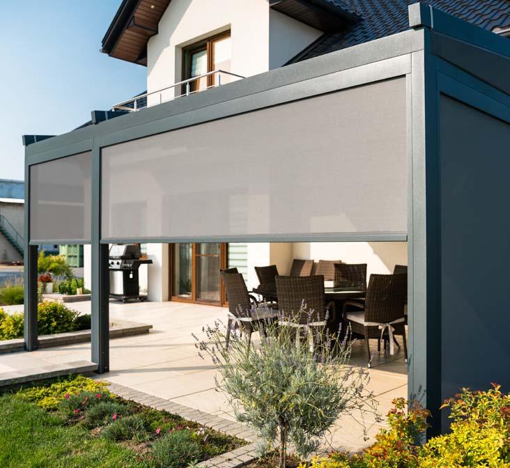 Die Hauptbestimmung der Screen-Außenrollladen ist der Schutz der Terrasse und des Gebäudes vor zu viel Sonne und vor Erhitzung. Die Rollladen beschatten zusätzlich und schützen die Räume. Deren Montage an großen Glaswänden garantiert einen optimalen Sonnenschutz. Die gleichzeitige Verwendung von Screen-Rollladen erlaubt den Betrieb der Klimaanlagen zu beschränken, wodurch die Nutzkosten von Gebäuden sich verringern. Die Rollvorhänge schützen auch wirksam die Terrassen vor Wind, Verschmutzungen und Insekten. Die zahlreichen Systeme werden individuell an jeden Entwurf angepasst. So ist dieses System der universellste Schutz für die Wände der Terrassenüberdachung.