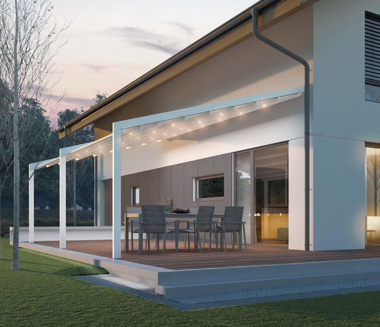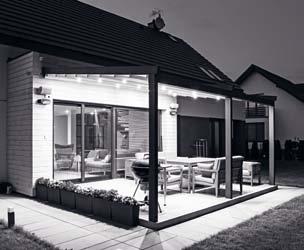 Tarasola Light to nowoczesny produkt dedykowany do zadaszeń średnich i dużych tarasów. Brak widocznych łączeń sprawia, że konstrukcja wygląda niezwykle lekko i futurystycznie. Konstrukcja montowana jest wyłącznie do ściany budynku. W systemie można zastosować wyposażenie dodatkowe w postaci zintegrowanego oświetlenia oraz promienników ciepła. Tarasola Light to model skrojony na miarę potrzeb wymagającego klienta do osłony przed słońcem i deszczem.