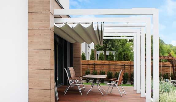 Tarasola Decor is an elegant terrace canopy which is manually controlled. Light roofing creating a wave-design is not only a good cover but also an interesting decorative touch emphasizing the nature of the particular place. Decor terrace pergola is a perfect option for people who look for a compromise between functionality and price. The most characteristic feature of this construction is visual lightness—in reality its structure is very solid thanks to the aluminium mouldings used. The greatest asset of the Decor Tarasola is a fact that it can be installed on the already existing constructions.