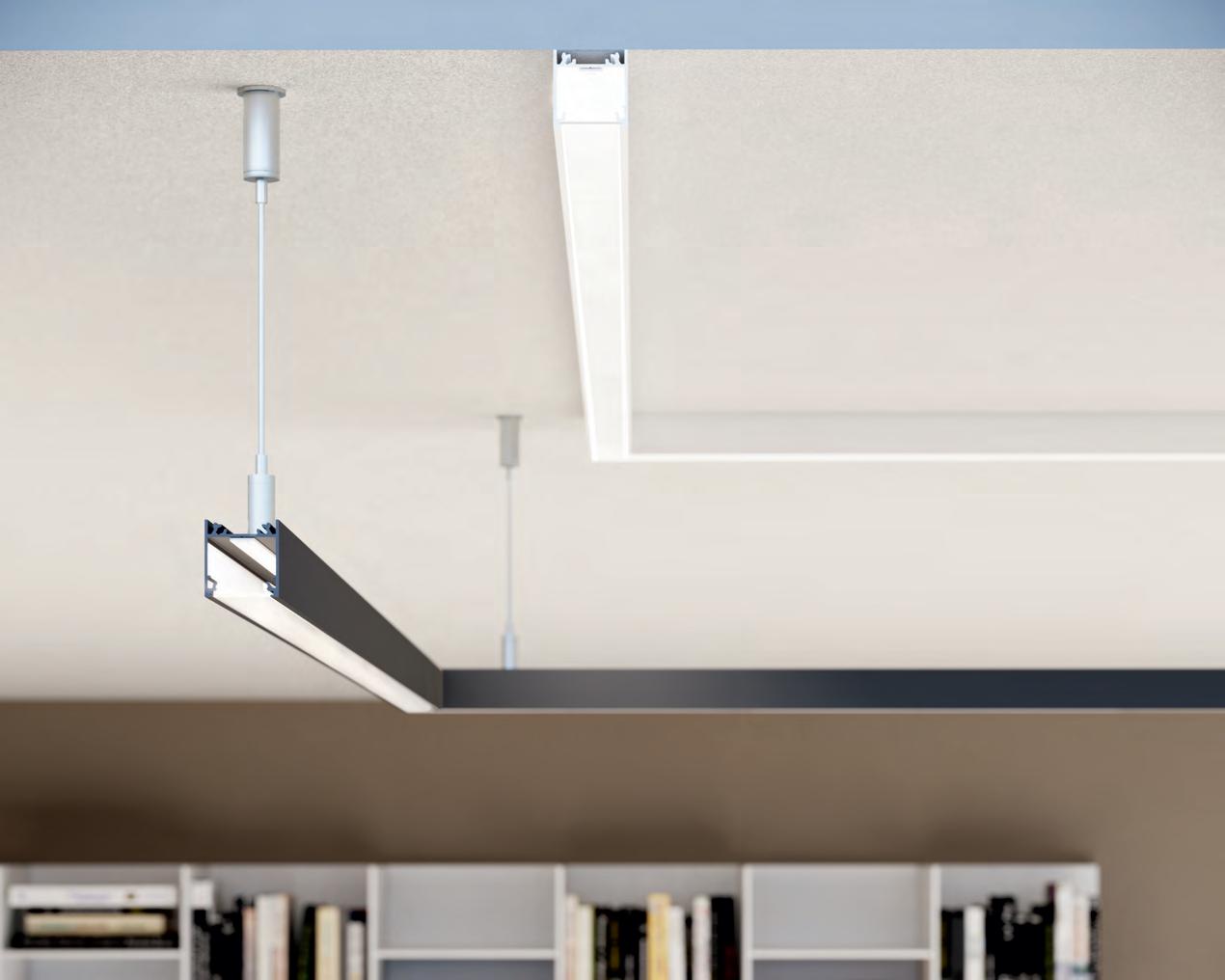 Ils permettent la création de luminaires suspendus. Ils sont particulièrement recommandés pour le profilé LED LINEA20, VARIO30-01, VARIO30-02, COMBO30, PHIL53, mais ils sont également compatibles avec la plupart des profilés.