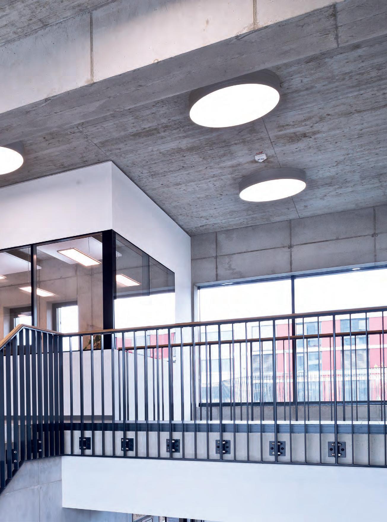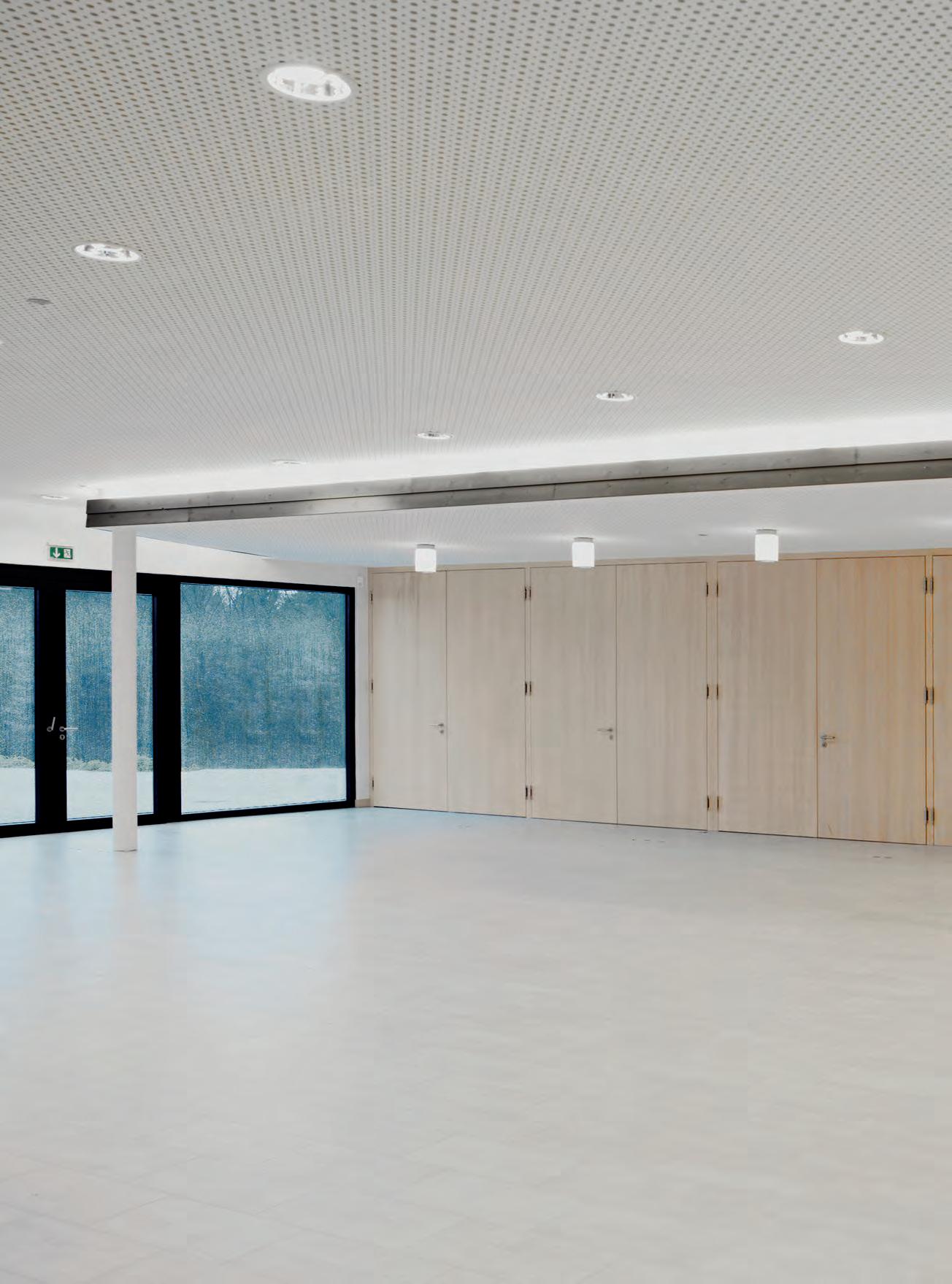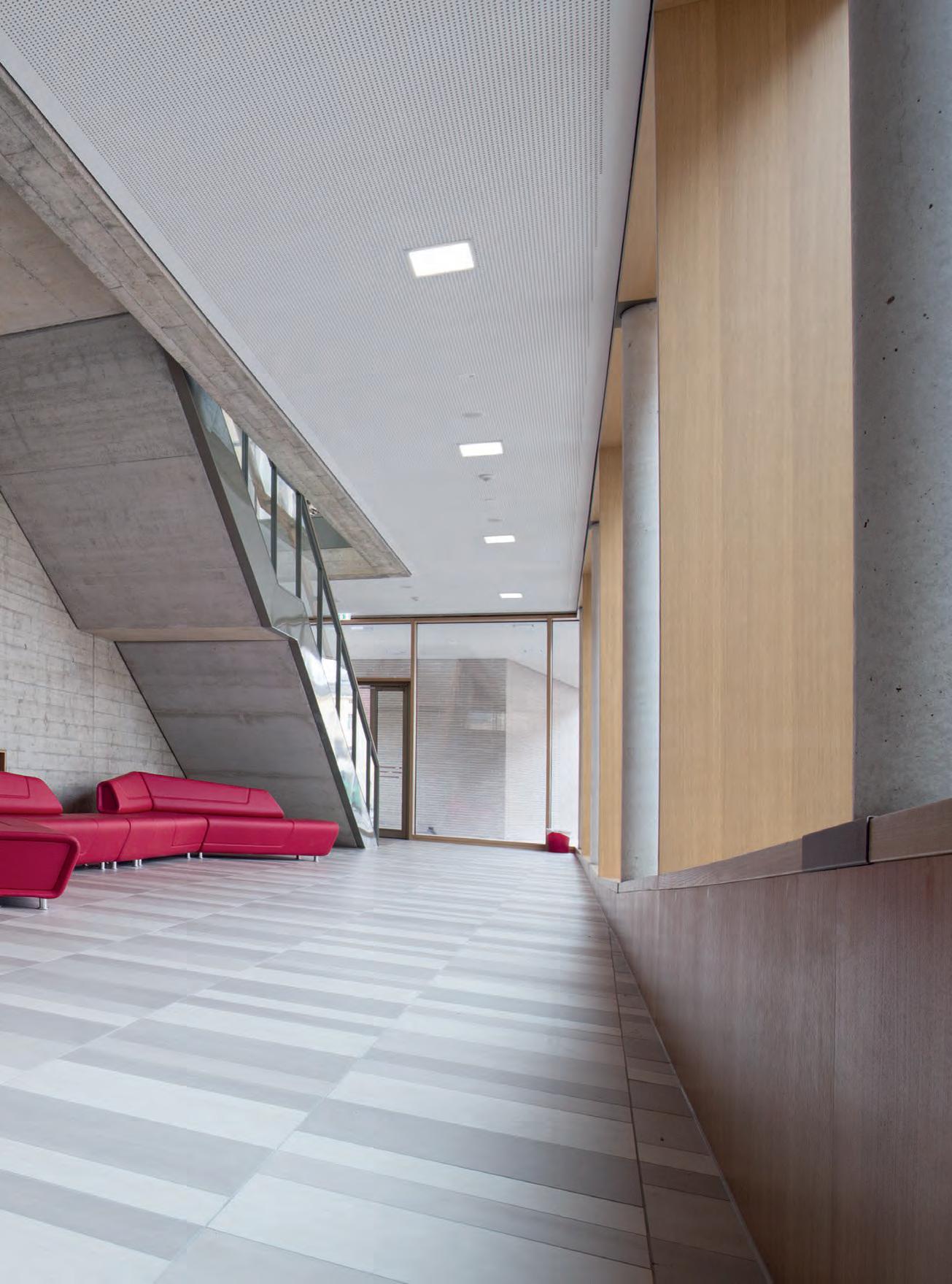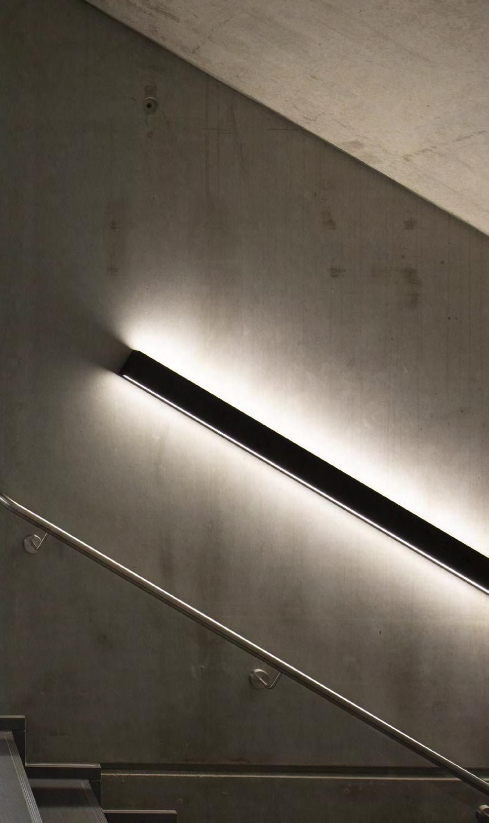 In verkleinerter Bauform wurde die lopia Q auch in den Fluren, Trppenhäusern und Umkleiden eingesetzt – hier als lopia Q 330-EG. Die Leuchtenfamilie verbindet diese Bereiche durch das einheitliche Erscheinungsbild und trägt mit ihrer homogenen Ausleuchtung wesentlich zur harmonischen Gestaltung der Raumatmosphäre bei.