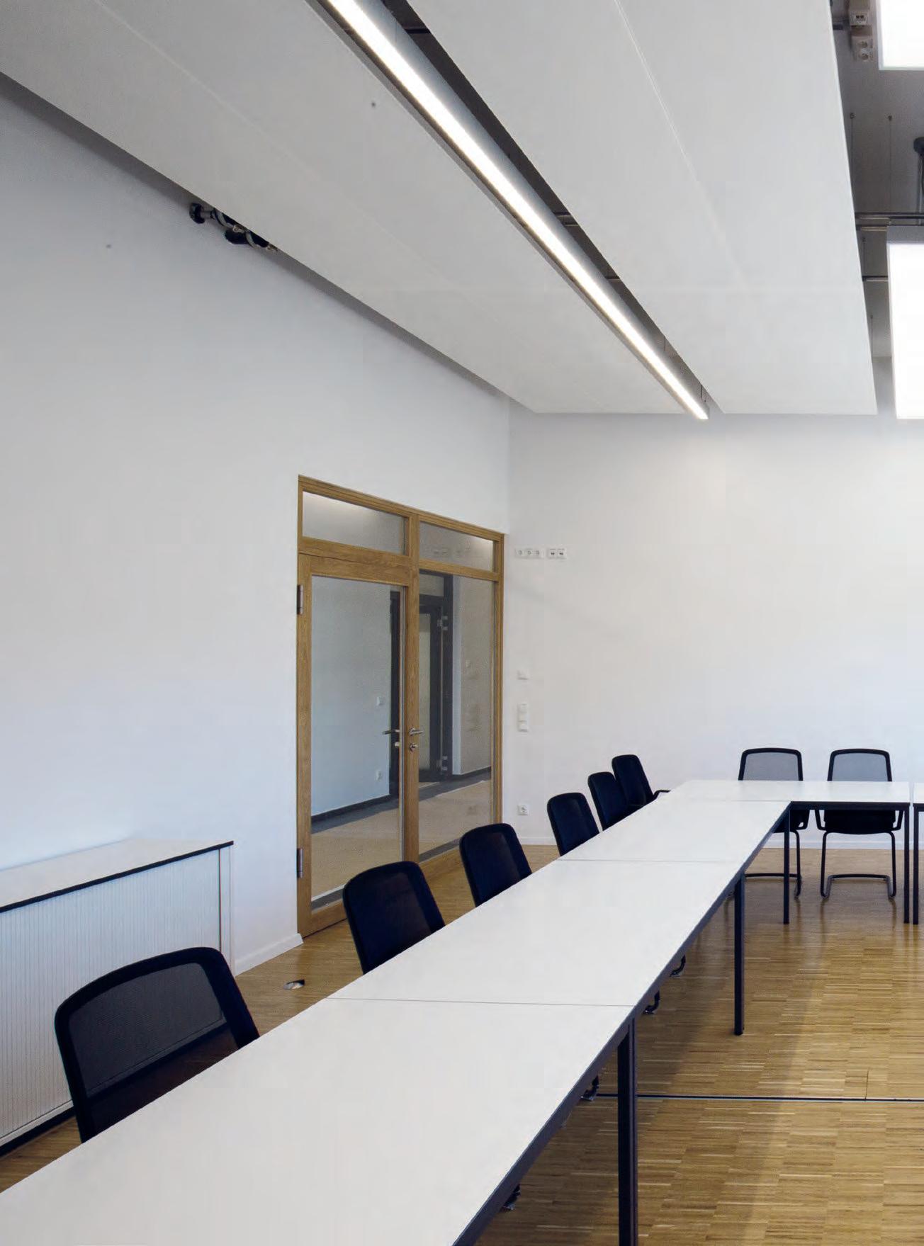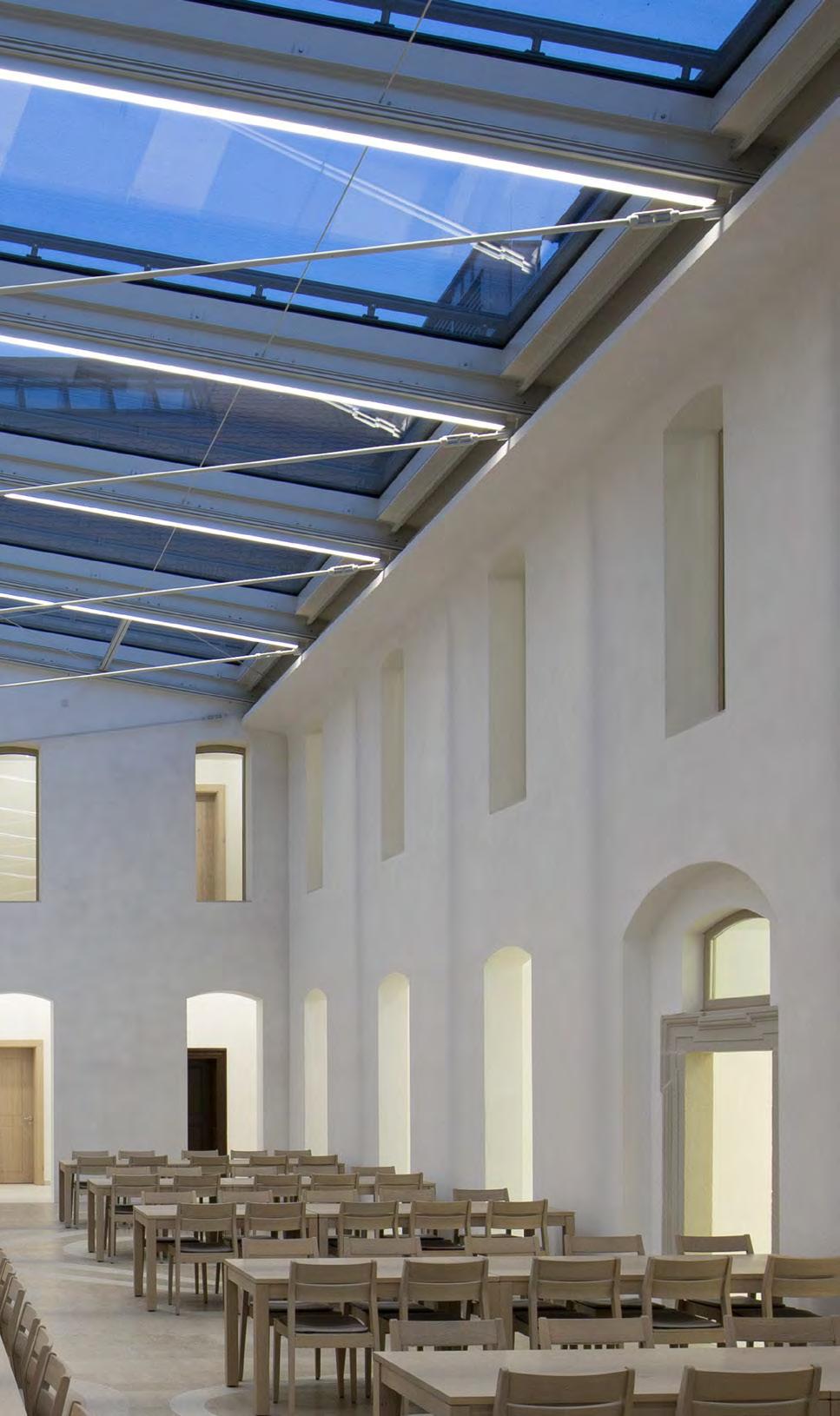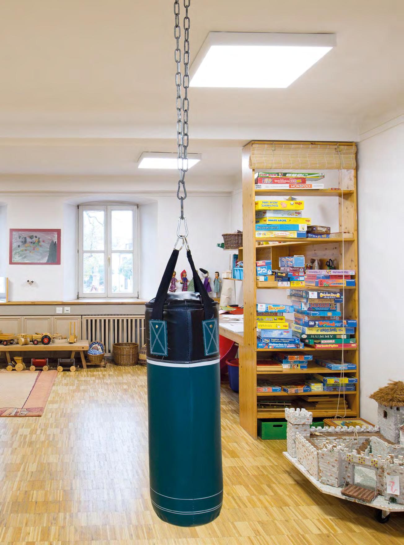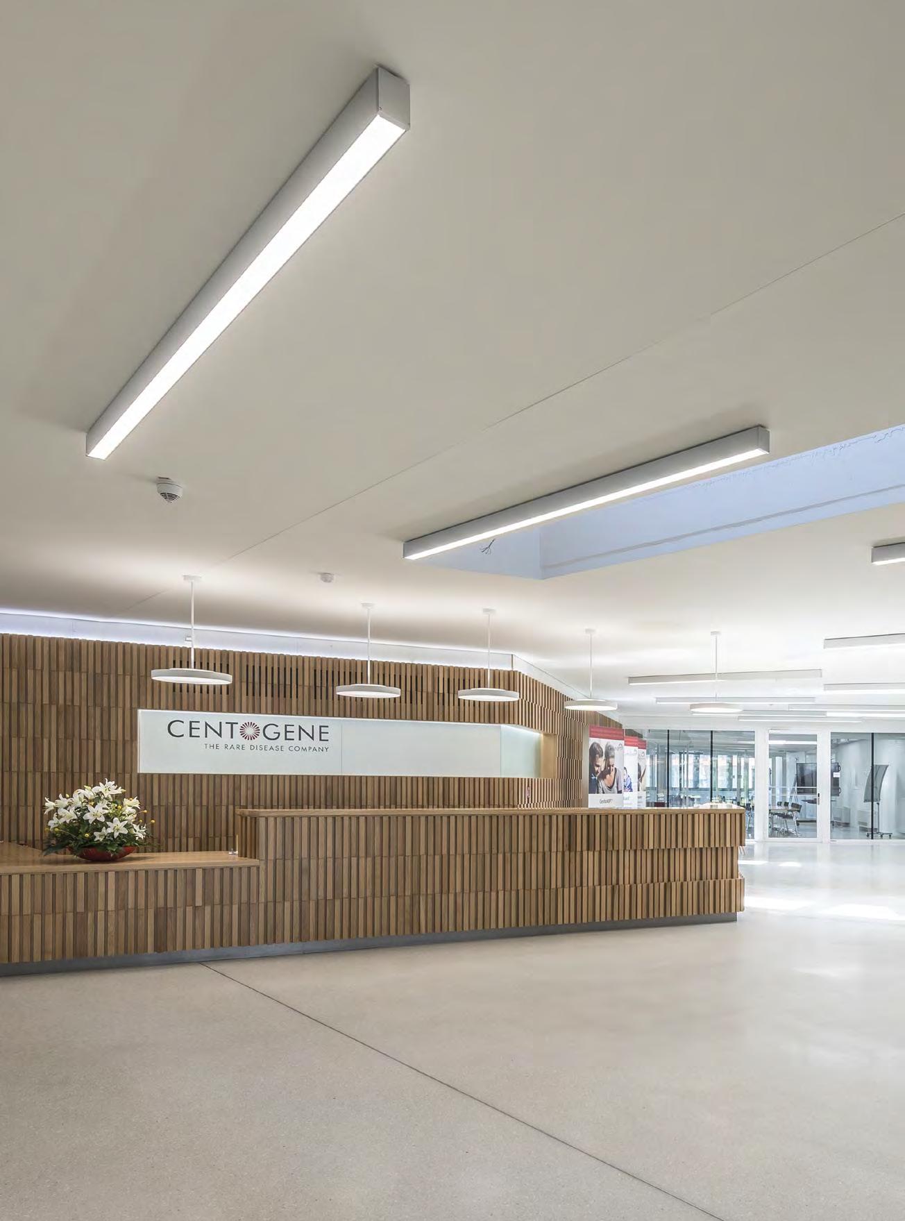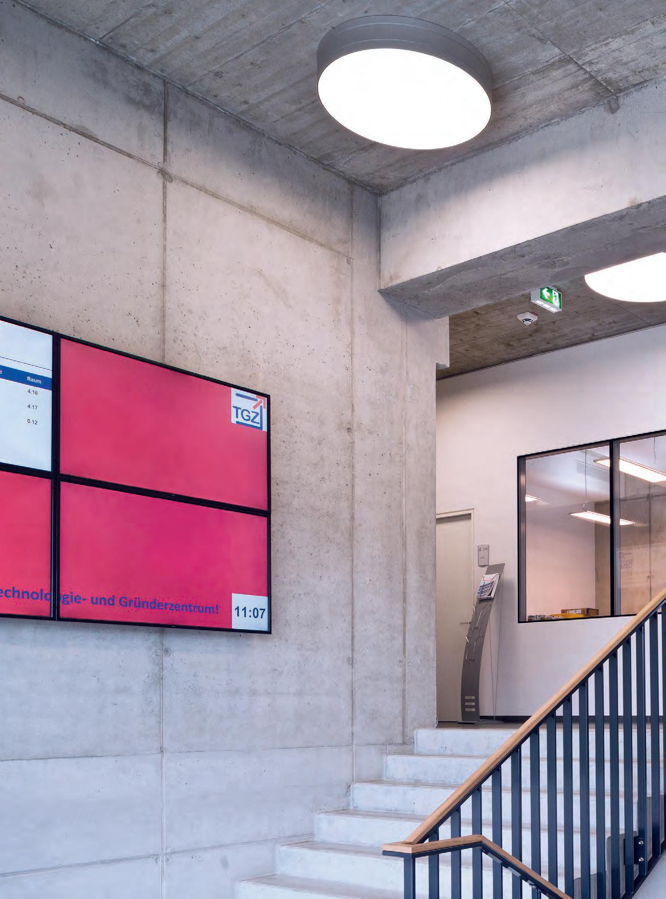 In verkleinerter Bauform wurde die lopia Q auch in den Fluren, Trppenhäusern und Umkleiden eingesetzt – hier als lopia Q 330-EG. Die Leuchtenfamilie verbindet diese Bereiche durch das einheitliche Erscheinungsbild und trägt mit ihrer homogenen Ausleuchtung wesentlich zur harmonischen Gestaltung der Raumatmosphäre bei.