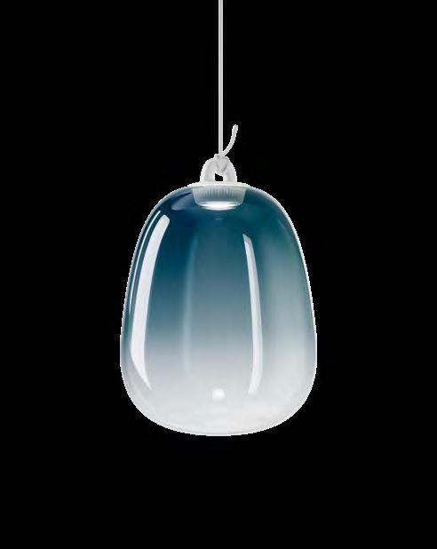 Oblò est une suspension au caractère hautement décoratif qui propose de nouvelles idées sur l’utilisation du Pyrex dans l’éclairage et enrichit le vocabulaire esthétique de Lodes avec la délicate sensibilité de Paola Navone‒OTTO Studio. La douce forme de cet article et les cinq nuances choisies pour les finitions évoquent l’imaginaire du monde marin et les reflets de la lumière sur l’eau, tandis que le câble en toile noué au crochet qui soutient le diffuseur crée l’illusion que la suspension flotte dans les airs comme une bouée sur l’eau. La source lumineuse LED est dissimulée, tout comme le câble électrique qui l’alimente ainsi, seul le verre est visible, comme s’il l’on regardait à travers un hublot. Disponible en trois formes aux lignes douces, Oblò propose des solutions d’éclairage en mesure de créer différents mouvements et rythmes, seule ou en composition, pour illuminer et décorer une vaste gamme d’ambiances. FR