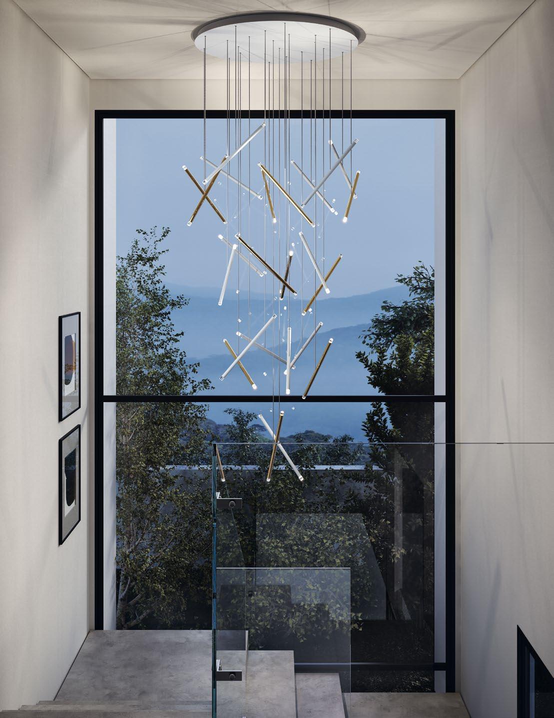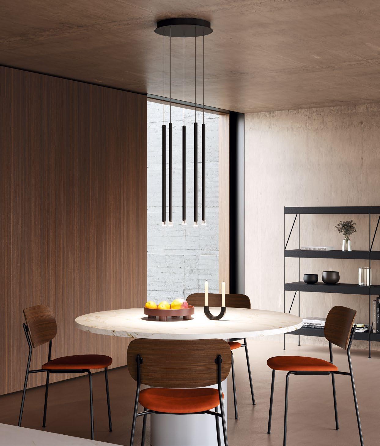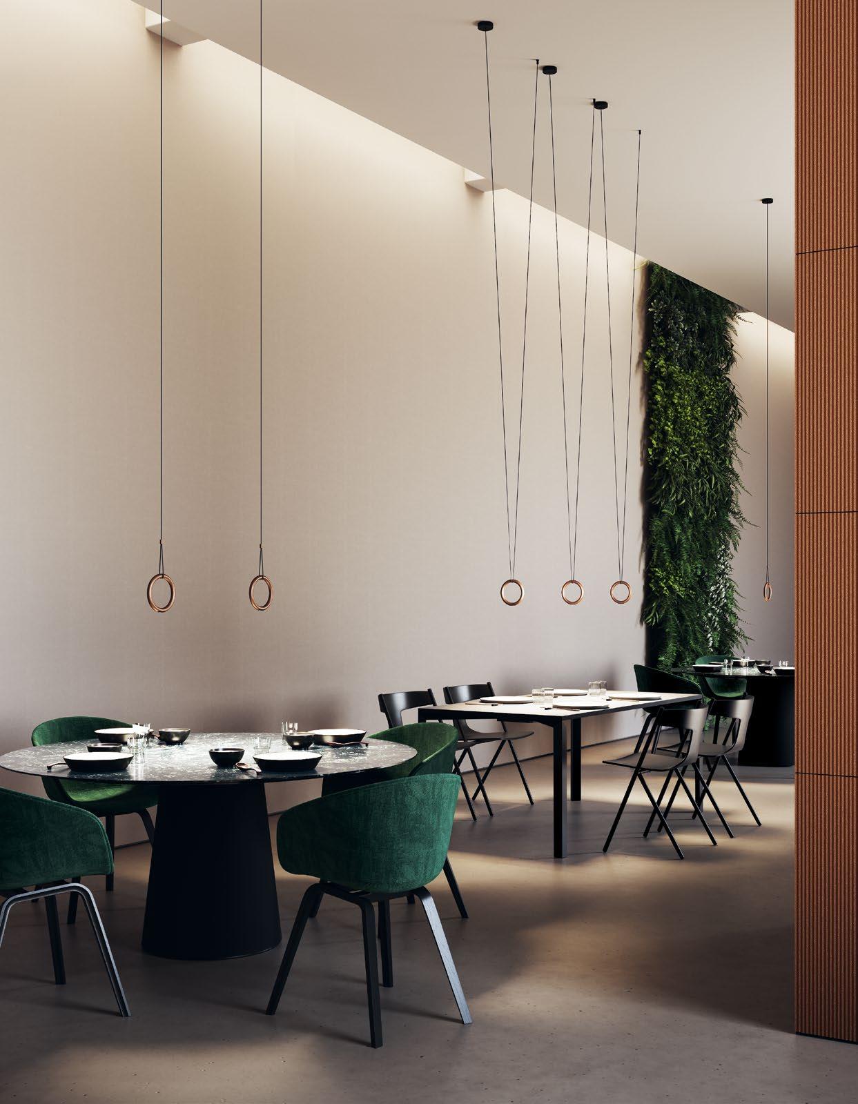 Alternatively, radial systems are an innovative way to separately manage various suspension cables starting from one single canopy, this is a particularly useful way to illuminate spaces with irregular ceilings.