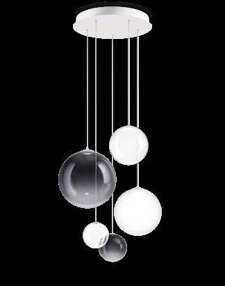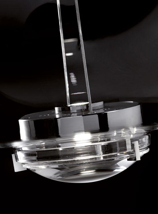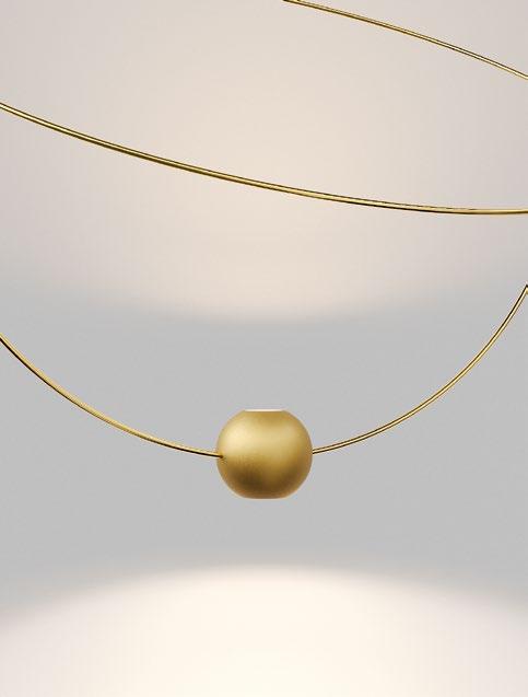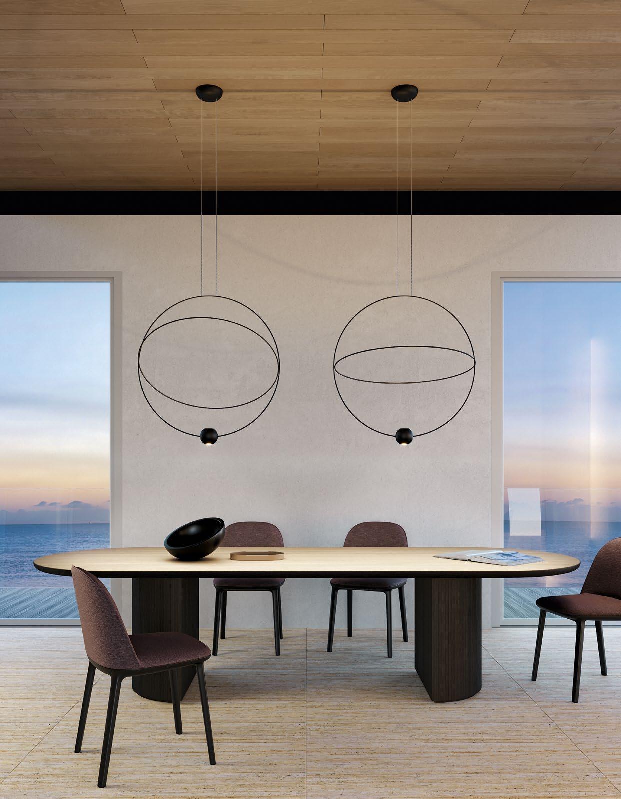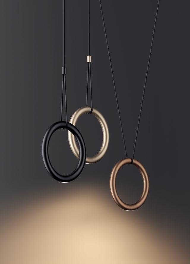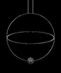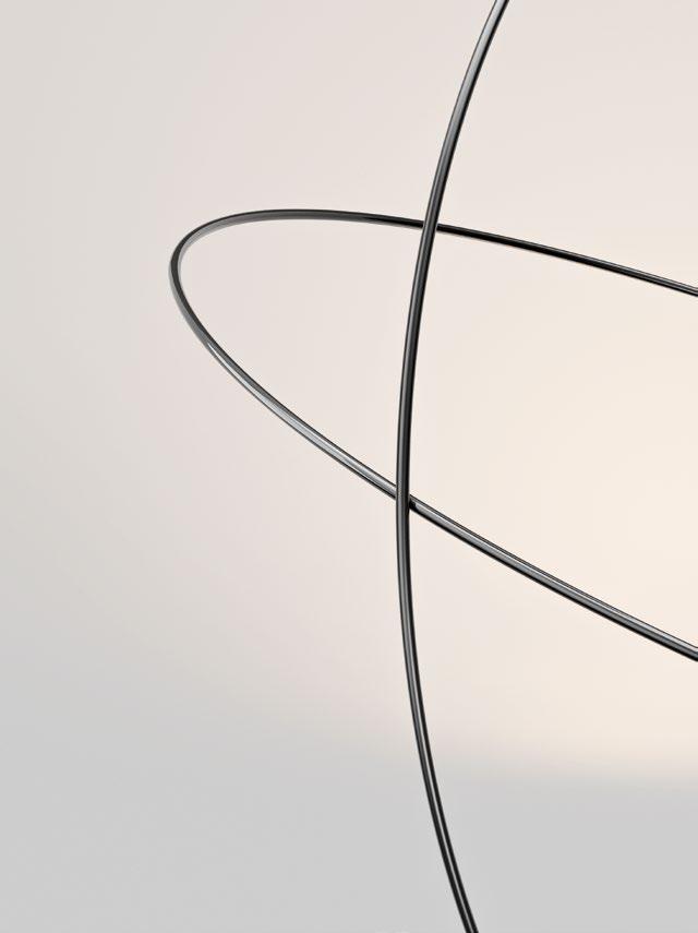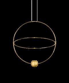 Elara 一名呼应天文学和希腊神话,同时它的几何设计还 仿照宇宙中的行星运行轨迹。受星体运动的启发,两只金属 圆环是这款灯的特色所在,其中一只能够以不同角度定位, 从而产生流动性和运动性,并使灯体下端形成一个容纳 光源的小球体。中心圆环通过定位可达到不同高度和角度, 允许用户尝试光与影的投射。此外,Elara 可通过由壁式 开关控制的调光器进行调光,使您能够在调整光线强度后 营造理想的照明解决方案。Elara 提供medium 中号 (Ø 60 厘米) 和large 大号(Ø 80 厘米 两种尺寸,适用于各 种环境,例如居家环境中的餐桌上方或是在酒店休息 室和餐厅等公共空间中作为大型装置的组成部分。 ZH