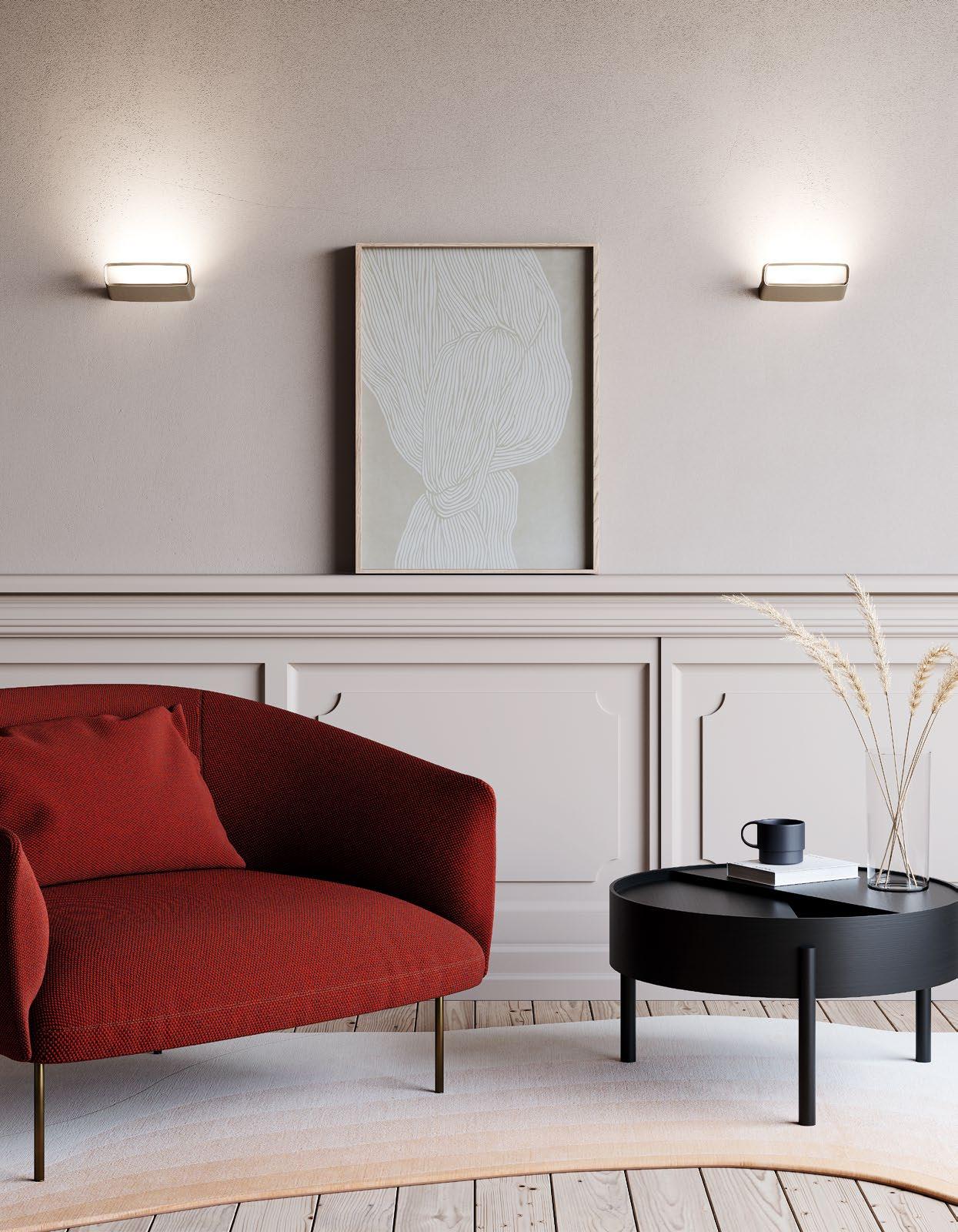 Ausführungen - jetzt auch Champagnerverfügbar ist, verbreitet die LED-Lichtquelle bidirektionales, funktionelles sowie effektvolles Licht, wodurch ein Spiel aus Licht und Schatten an der Wand entsteht. DE