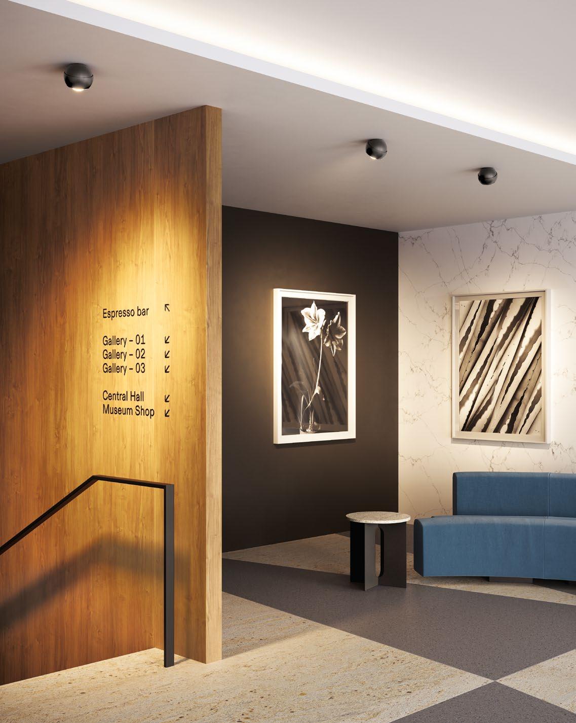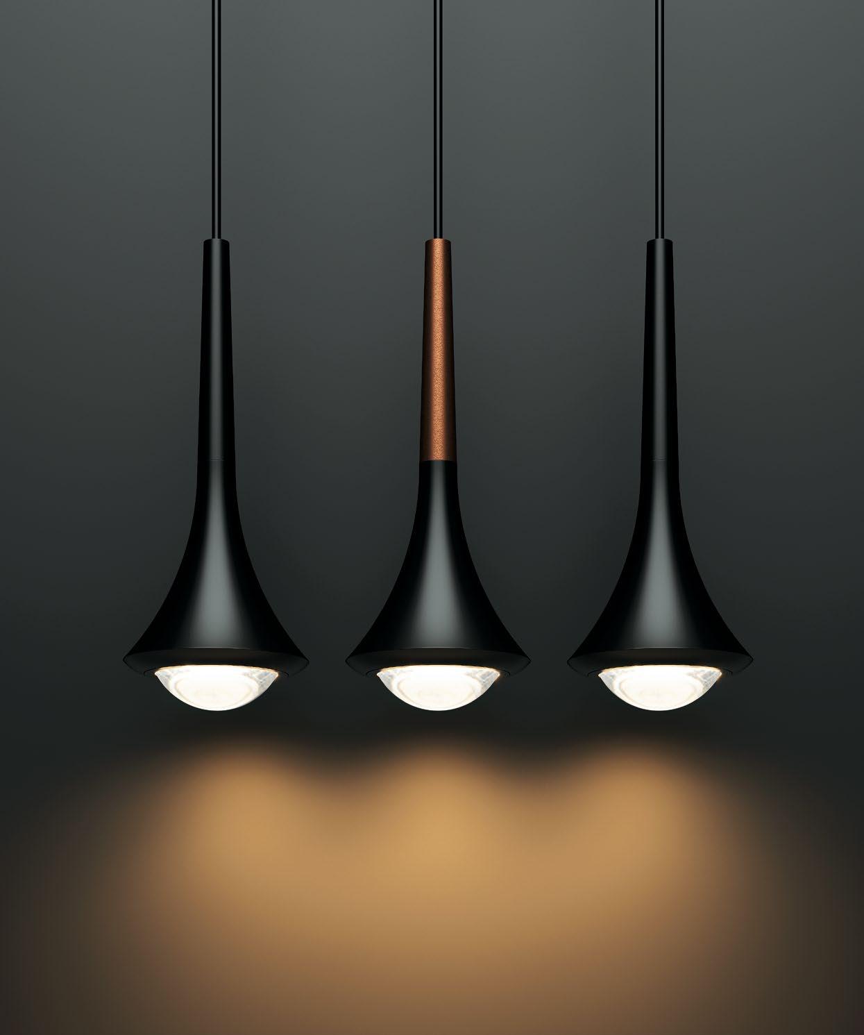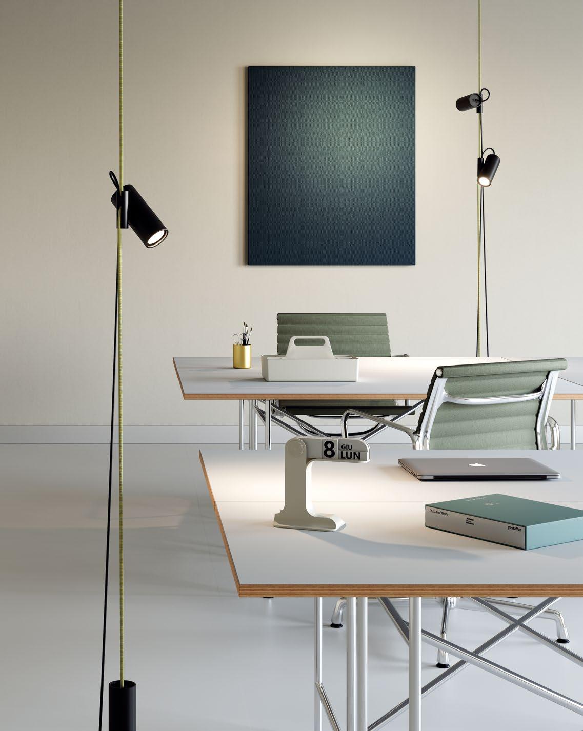 Meanwhile, track systems offer various possibilities of in-line composition with a variable number of lamps depending on the preferred type of installation, for example in projects which require height-aligned or staggered suspensions.