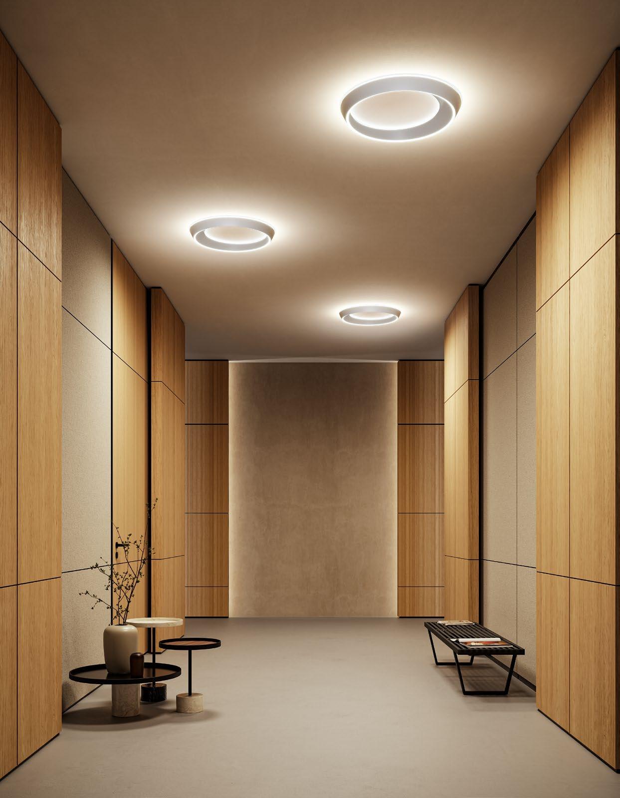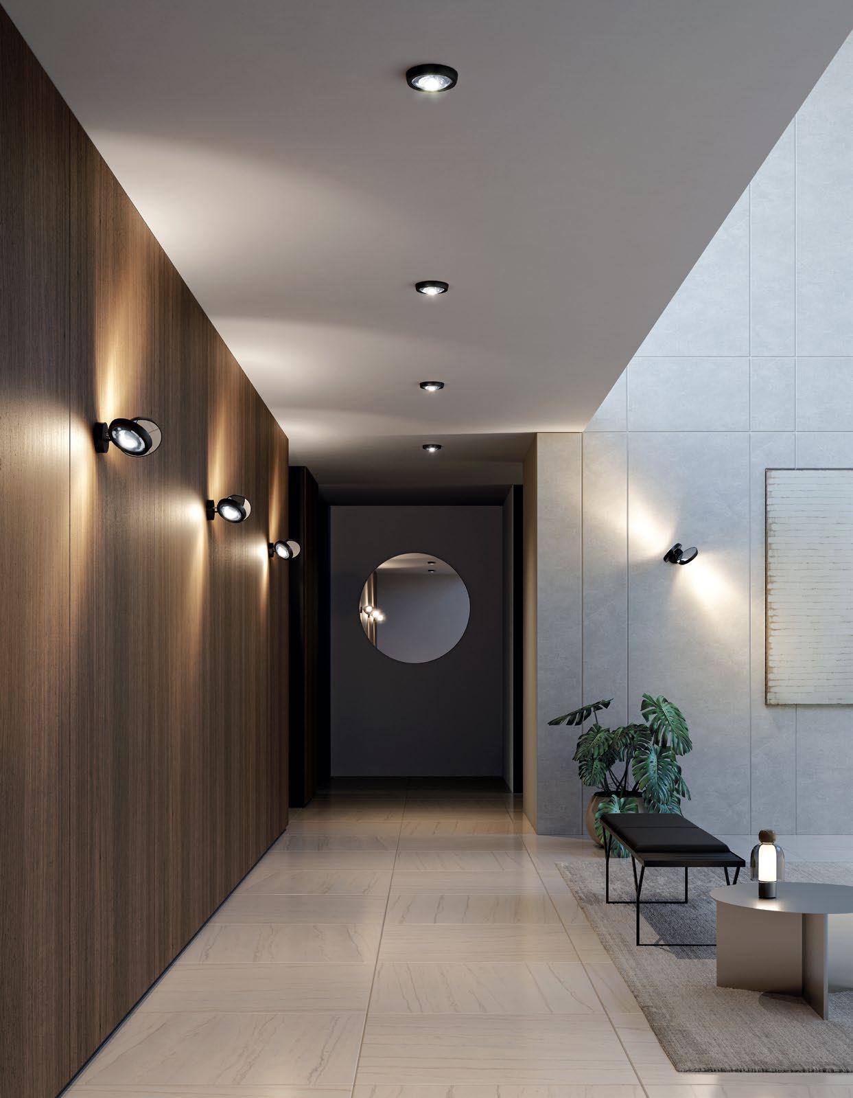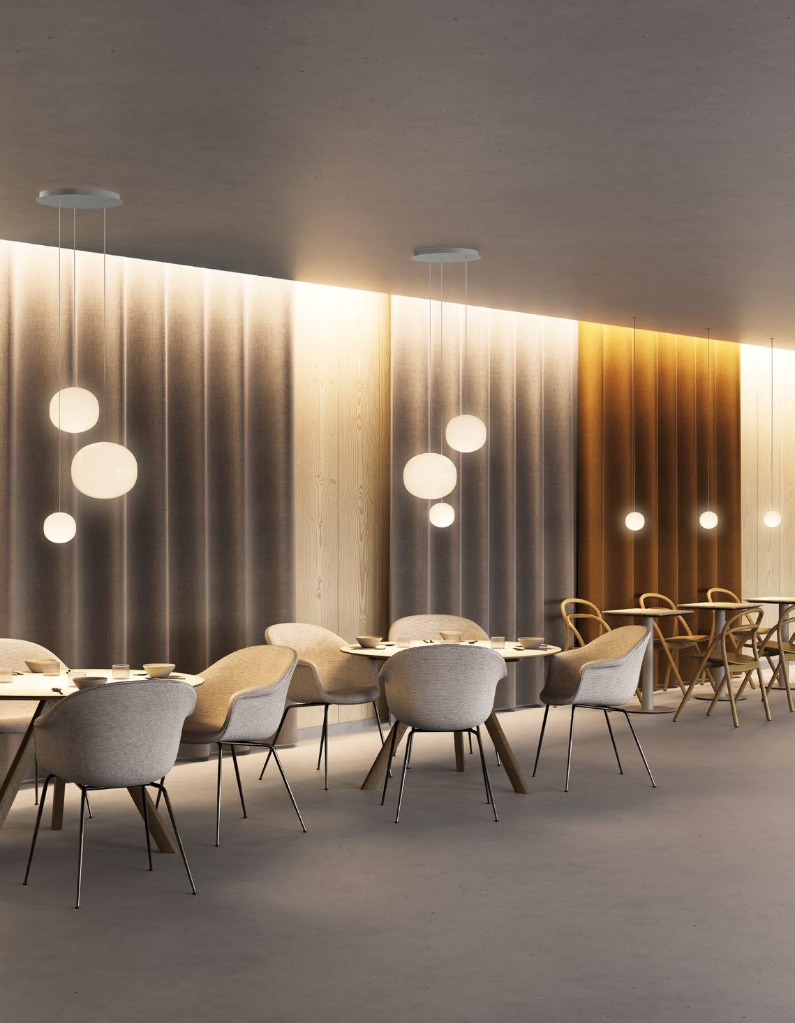Meanwhile, track systems offer various possibilities of in-line composition with a variable number of lamps depending on the preferred type of installation, for example in projects which require height-aligned or staggered suspensions.