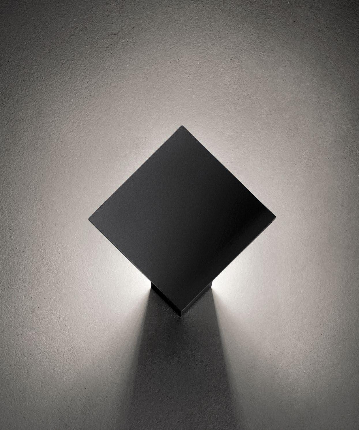 Laser是一款四边形的紧凑灯具,具有建筑美感, 广泛适用。喷漆钢材的结构,有一种尺寸和三种不 同的颜色,如今还有香槟色,LED 光源散发着双向 的功能灯光,在墙壁上形成光影效果。 ZH