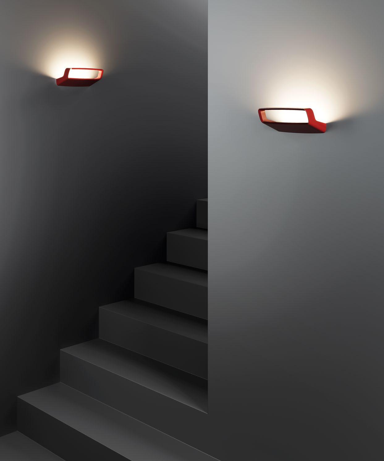Laser es una lámpara compacta con forma de paralelepípedo con carácter versátil y arquitectónico. De su estructura de acero pintado, disponible en una dimensione y en tres diferentes acabados, ahora incluyendo Champán, la fuente de LED difunde una luz bidireccional funcional y con efecto que crea juegos de luz y sombra en la pared. ES