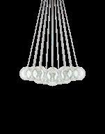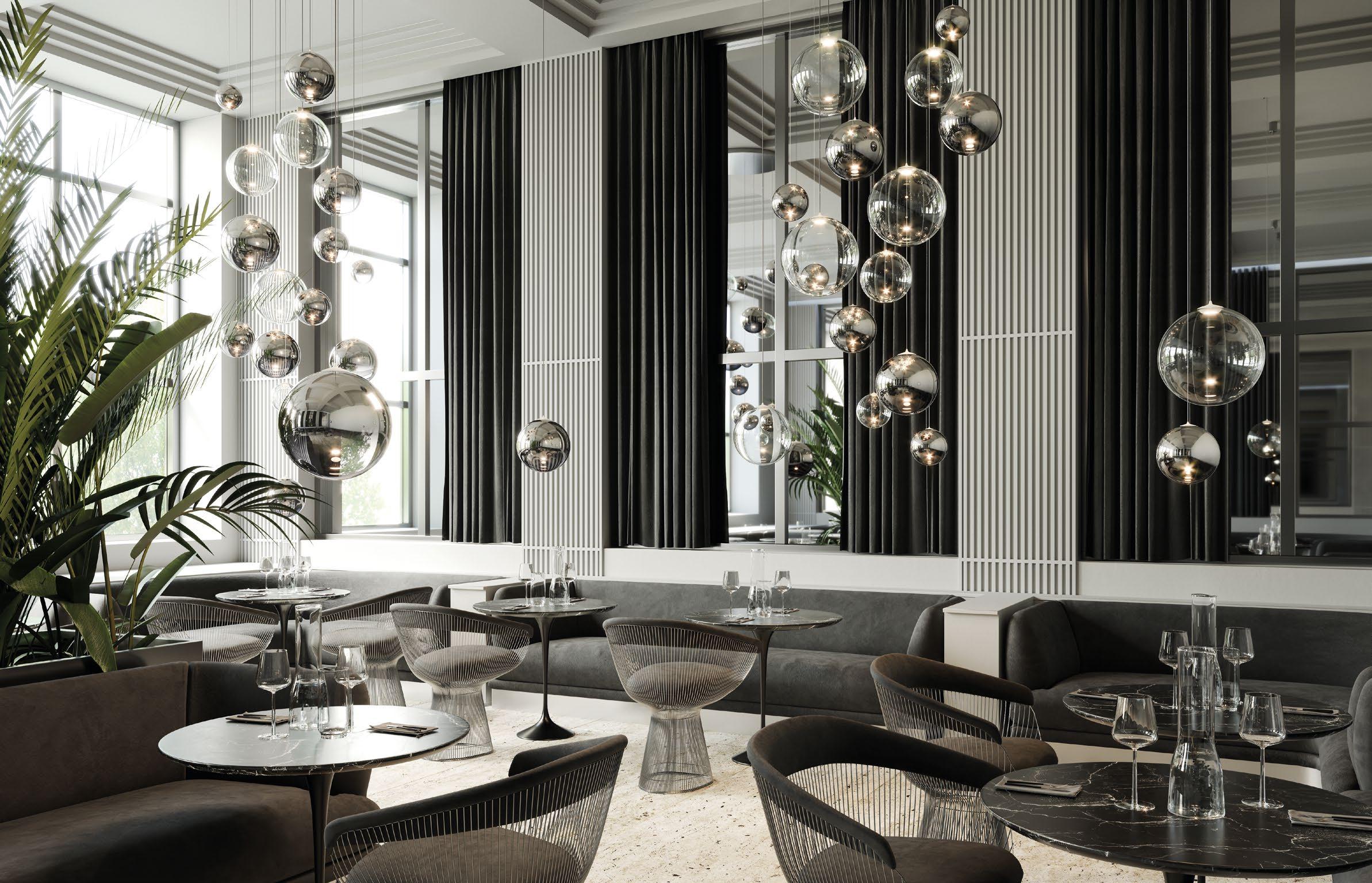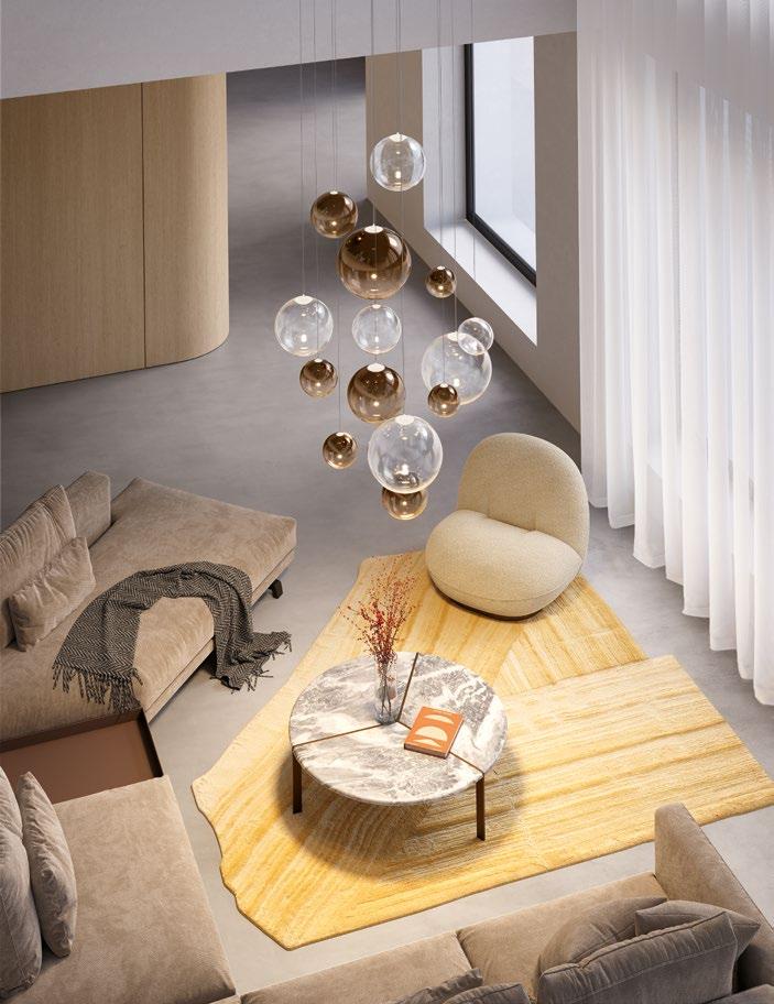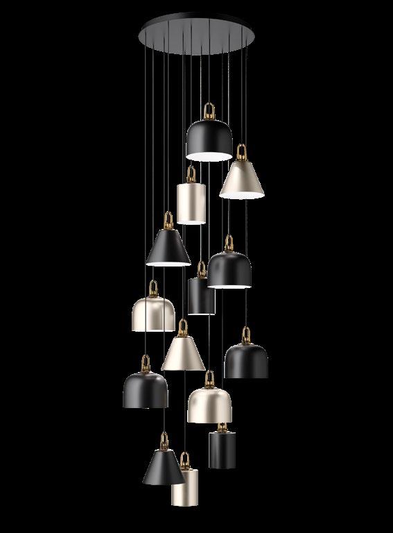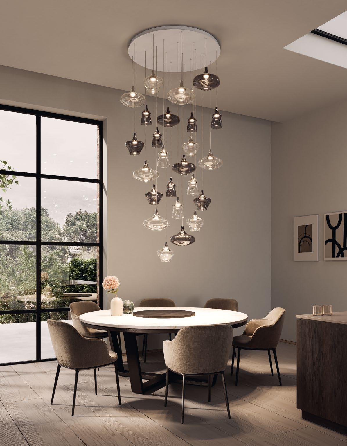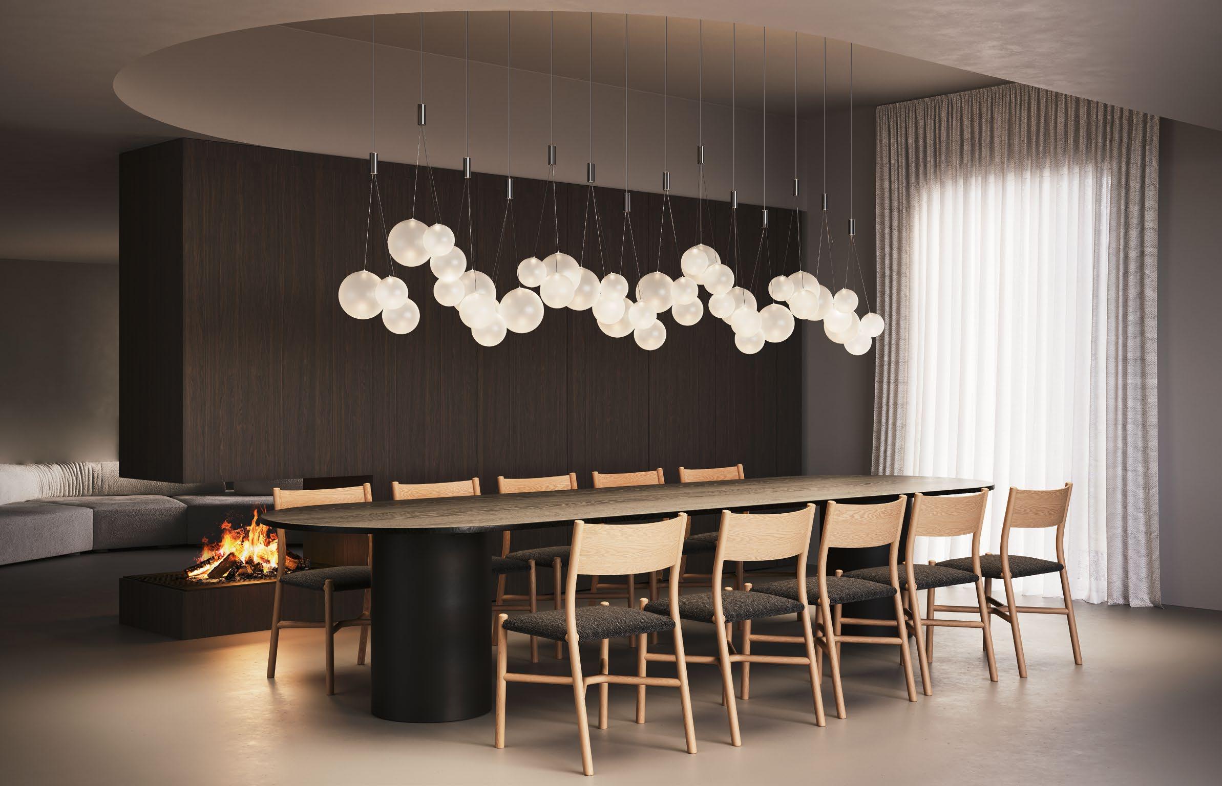 Random Cloud is a chandelier, an evolution of Lodes’ Random Solo pendant, connecting multiple glass pendants to a central canopy. The pendants can be grouped to create ‘clouds’ of 7, 14, 19, or 23 via steel cables cut to precise lengths to create distinct ‘cloud’ formations. Each composition option can be achieved with spheres 23 or 28 cm in diameter and by choosing one of seven finishes available. The wide choice of compositions and configurations available to users makes Random Cloud a versatile option for homes, hospitality venues and workspaces alike.