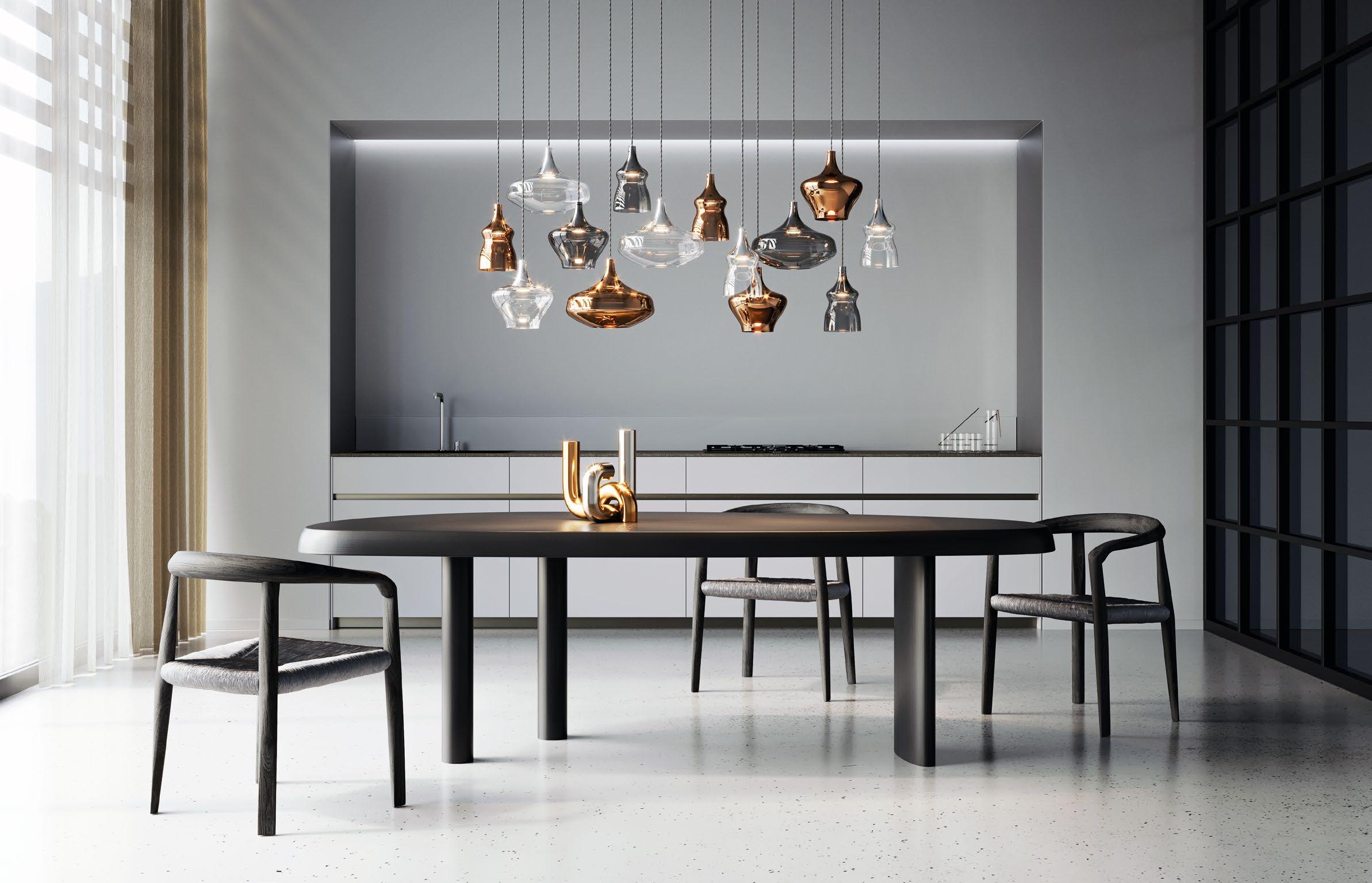 The Kelly suspension lamp by Andrea Tosetto is added to the catalogue. La lampada a sospensione Kelly disegnata da Andrea Tosetto entra in catalogo.