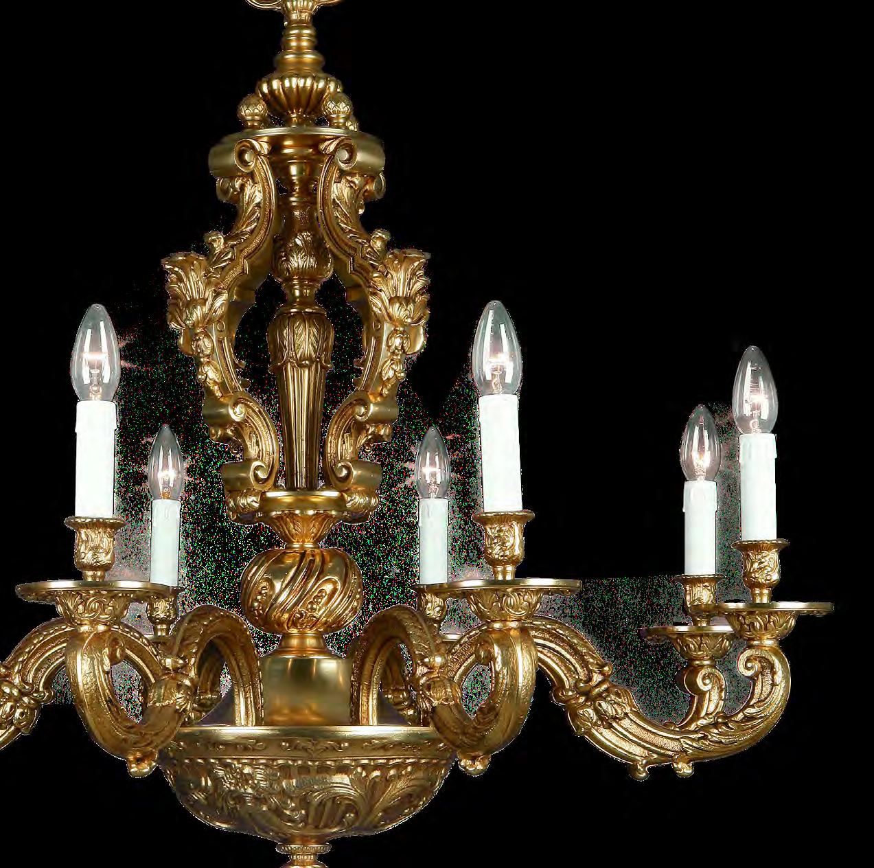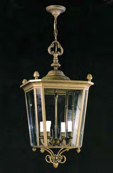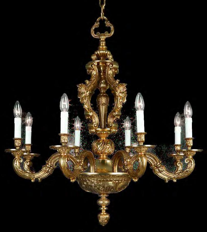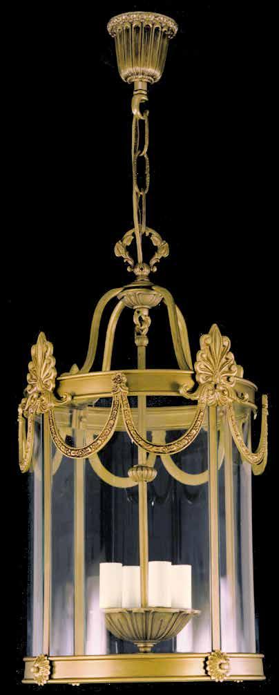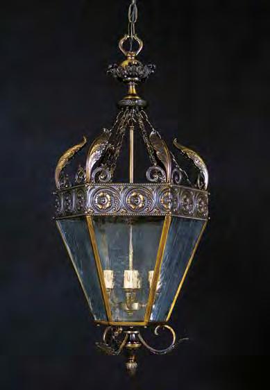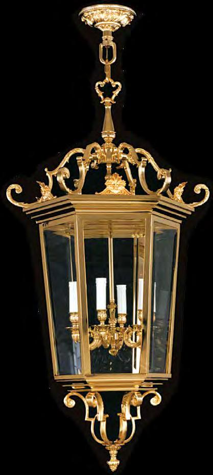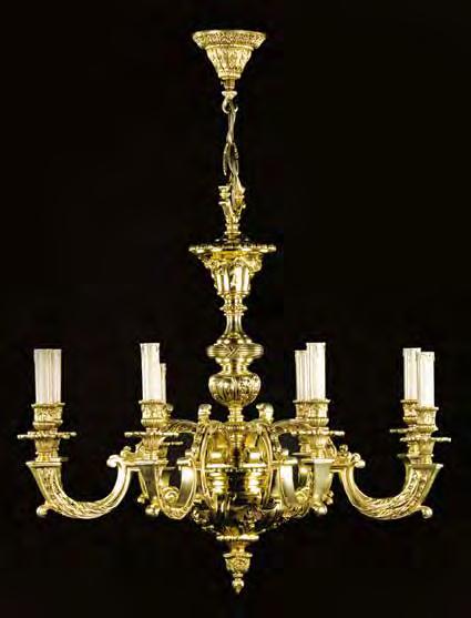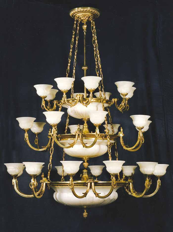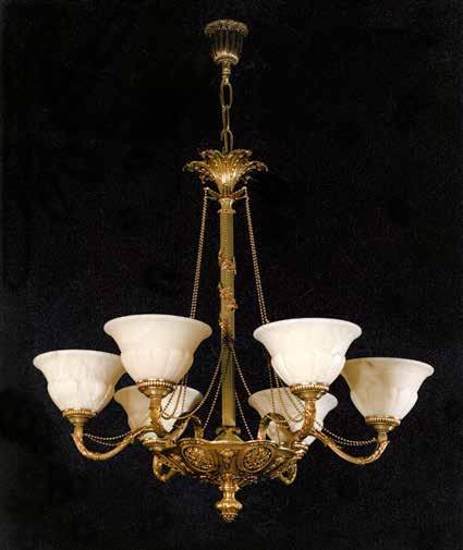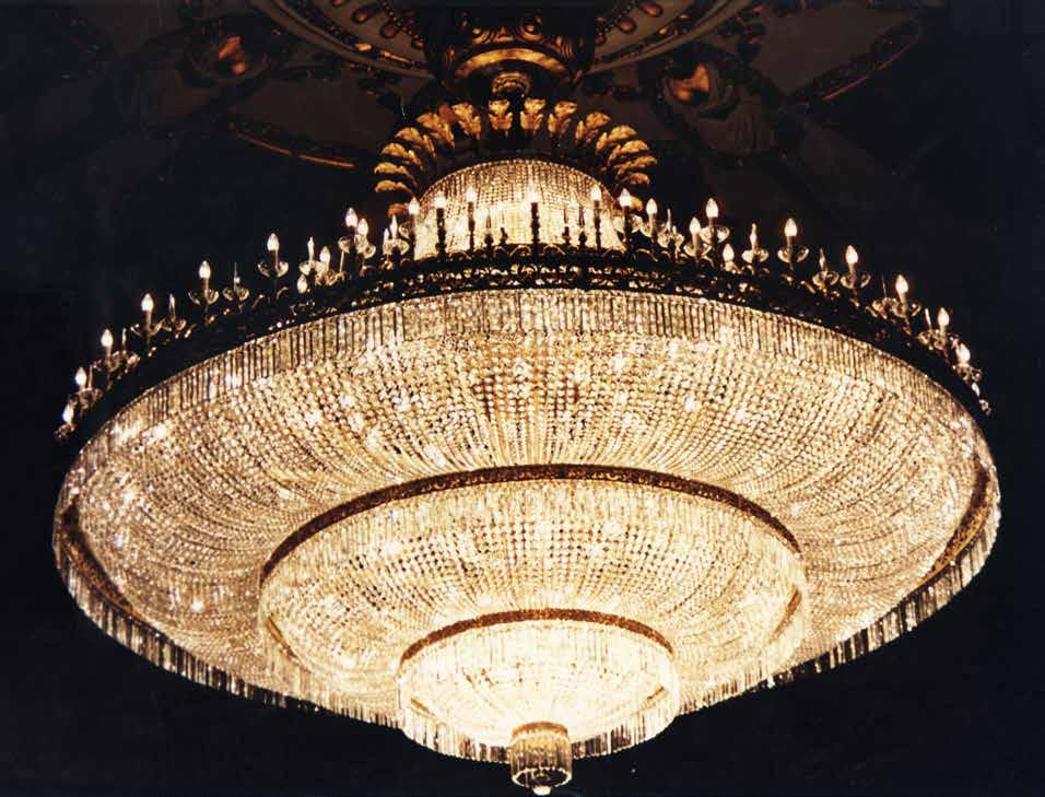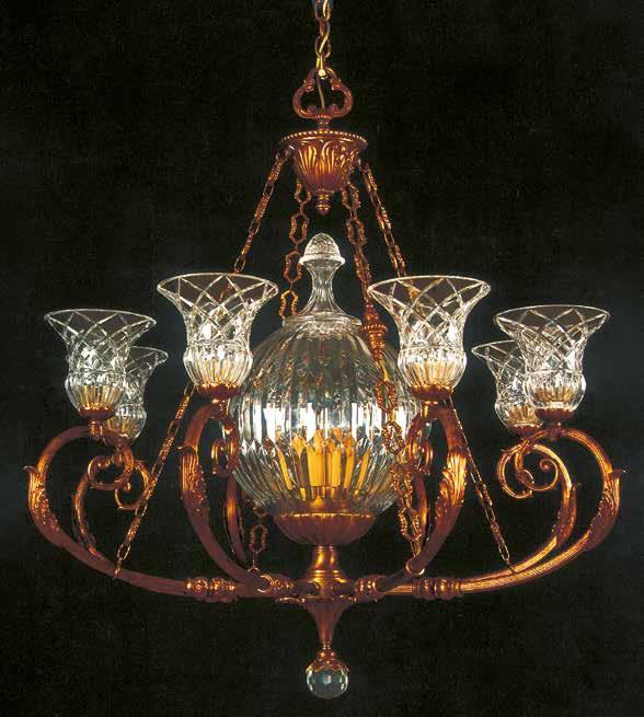 The Lobby area is decorated with 6 chandeliers hand made in sand cast brass apperaring at the image og the right.