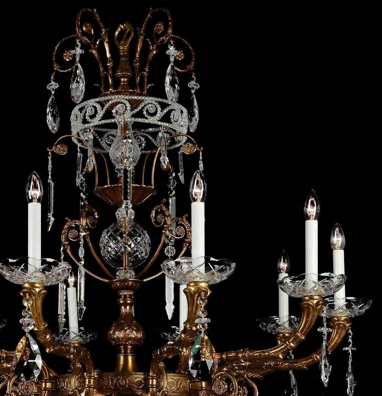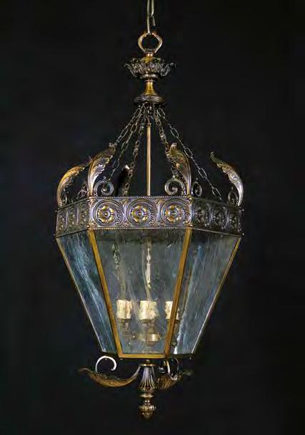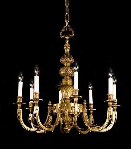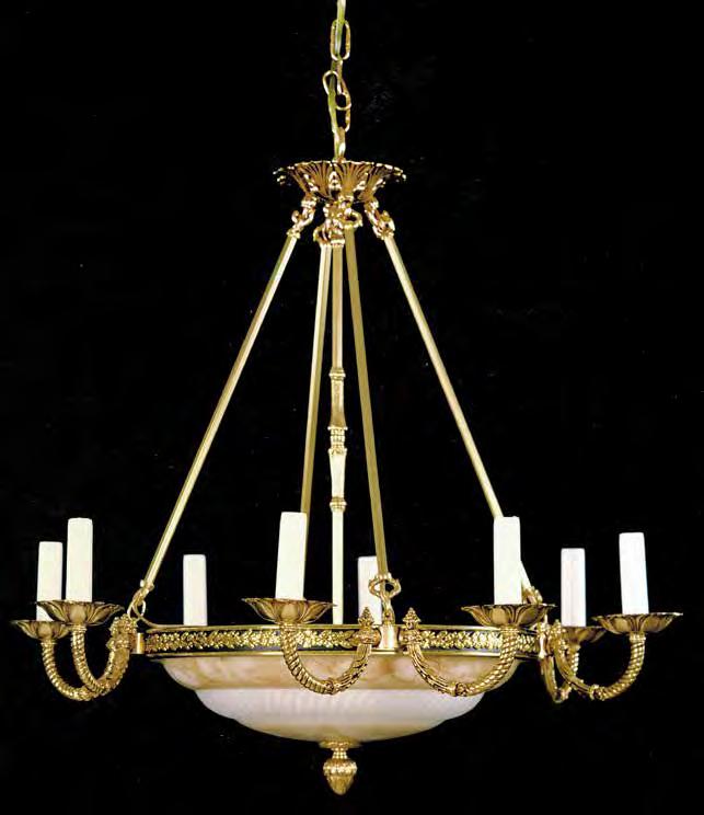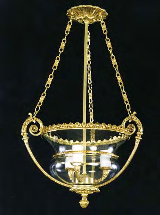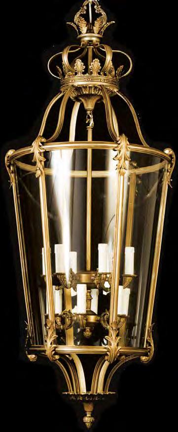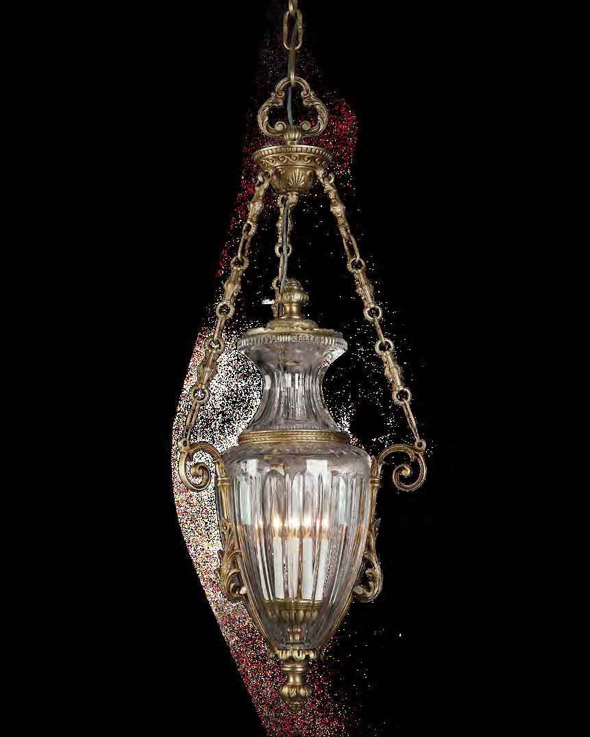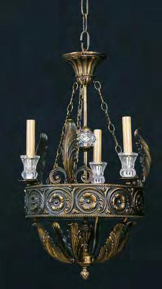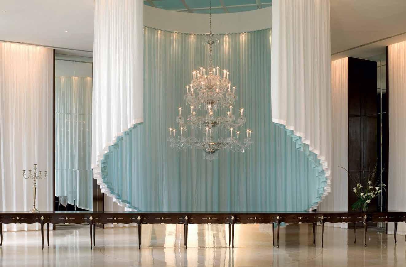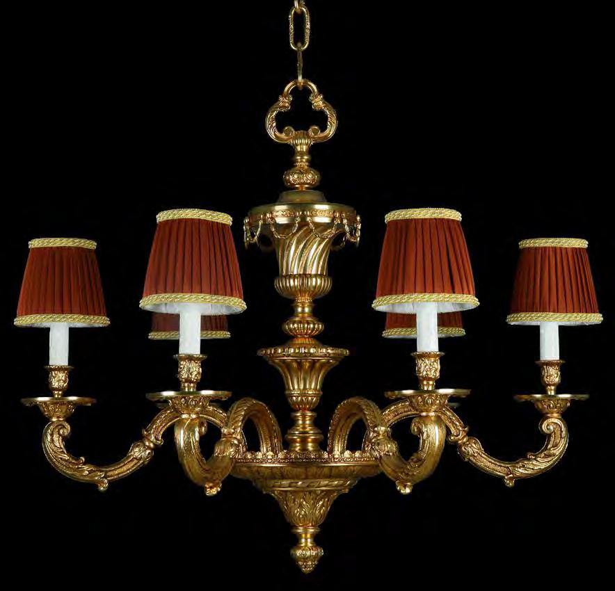 The Lobby area is decorated with 6 chandeliers hand made in sand cast brass apperaring at the image og the right.
