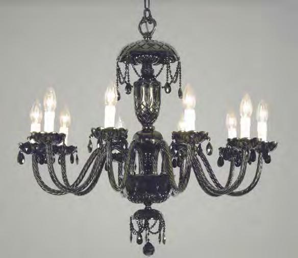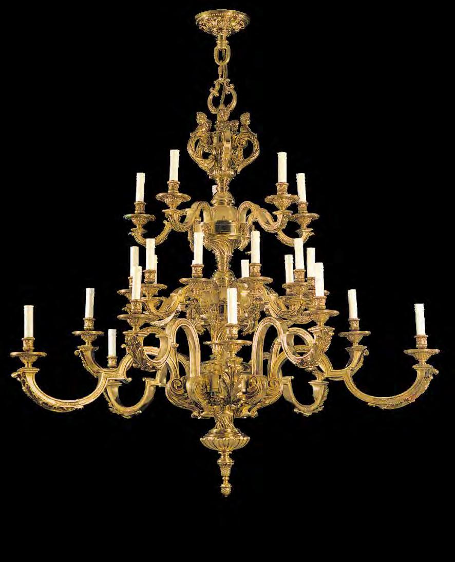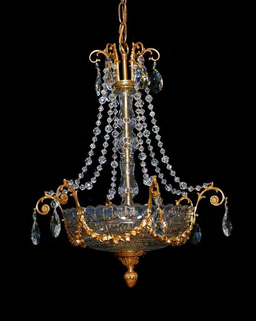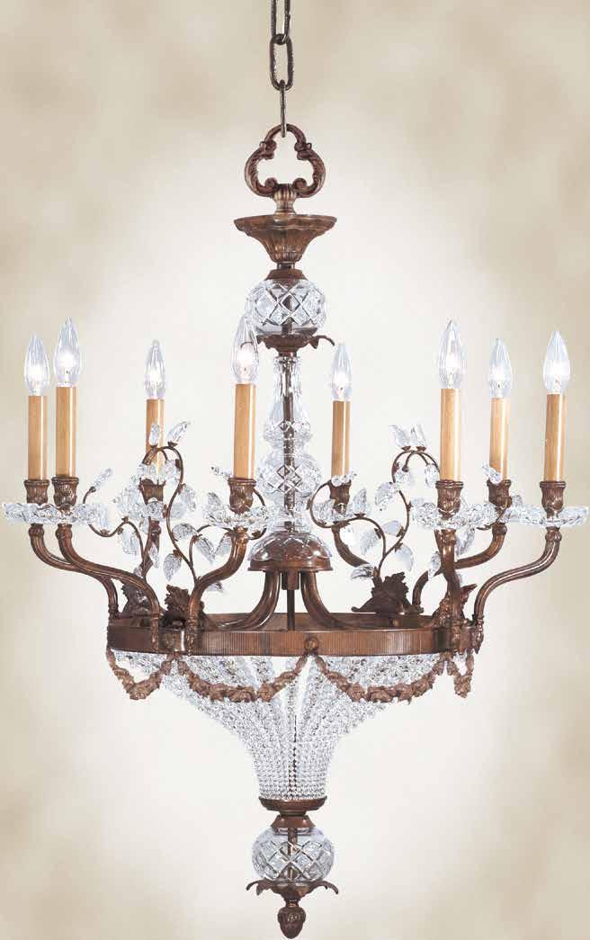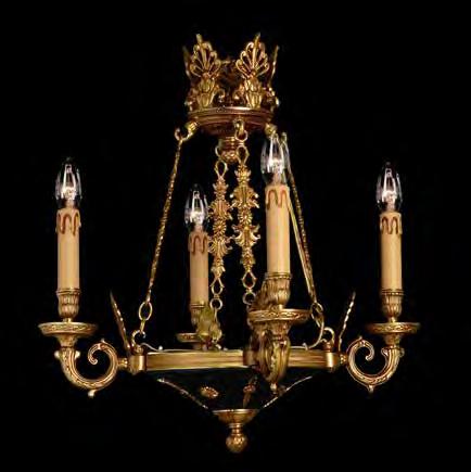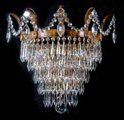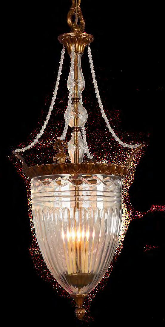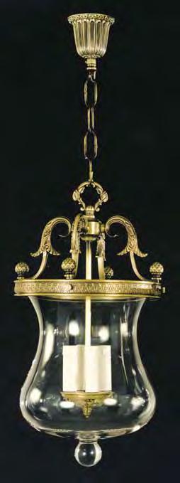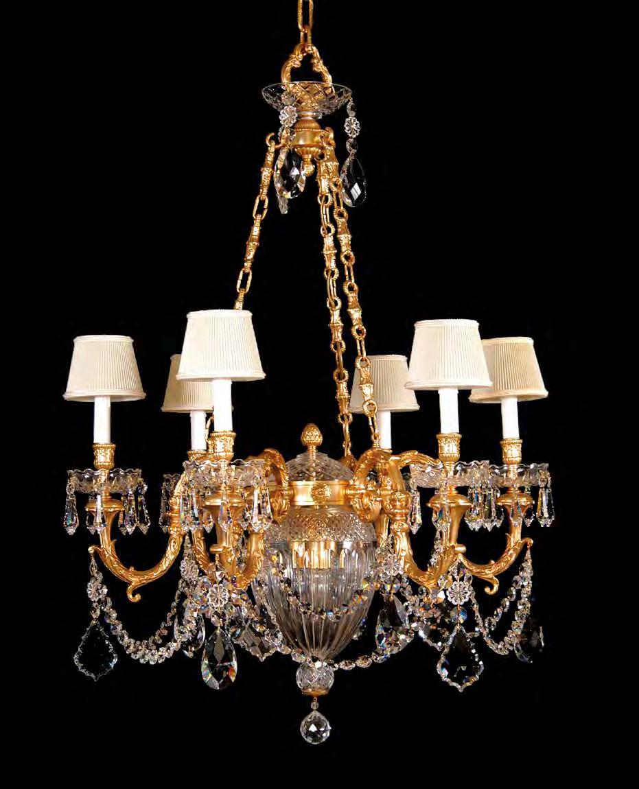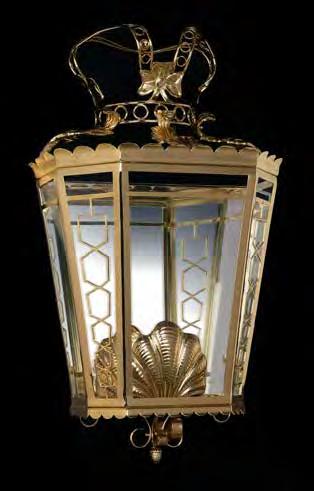 The Lobby area is decorated with 6 chandeliers hand made in sand cast brass apperaring at the image og the right.